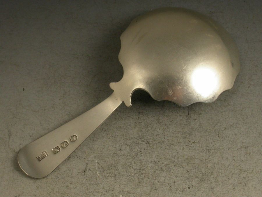 George III Antique Silver Caddy Spoon with Large Circular Bowl