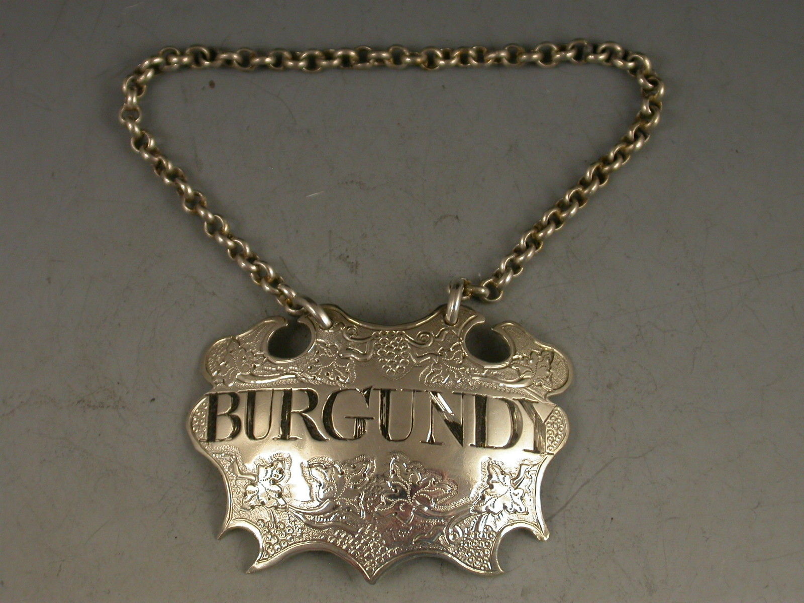 George III Antique Silver Chased Escutcheon Wine Label 'Burgundy'