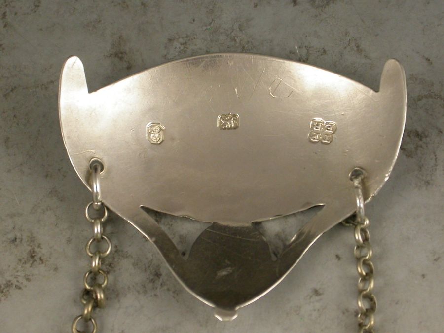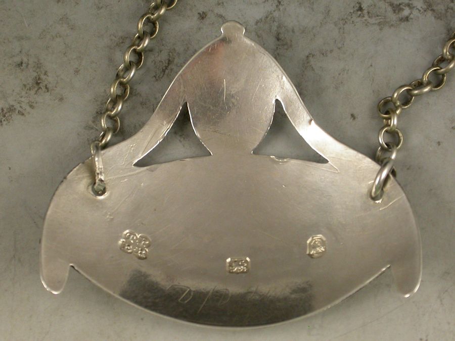 A good George III silver Wine Label of oval form with crested shield above supported by swags, a bright-cut and niello filled border, incised for Port.