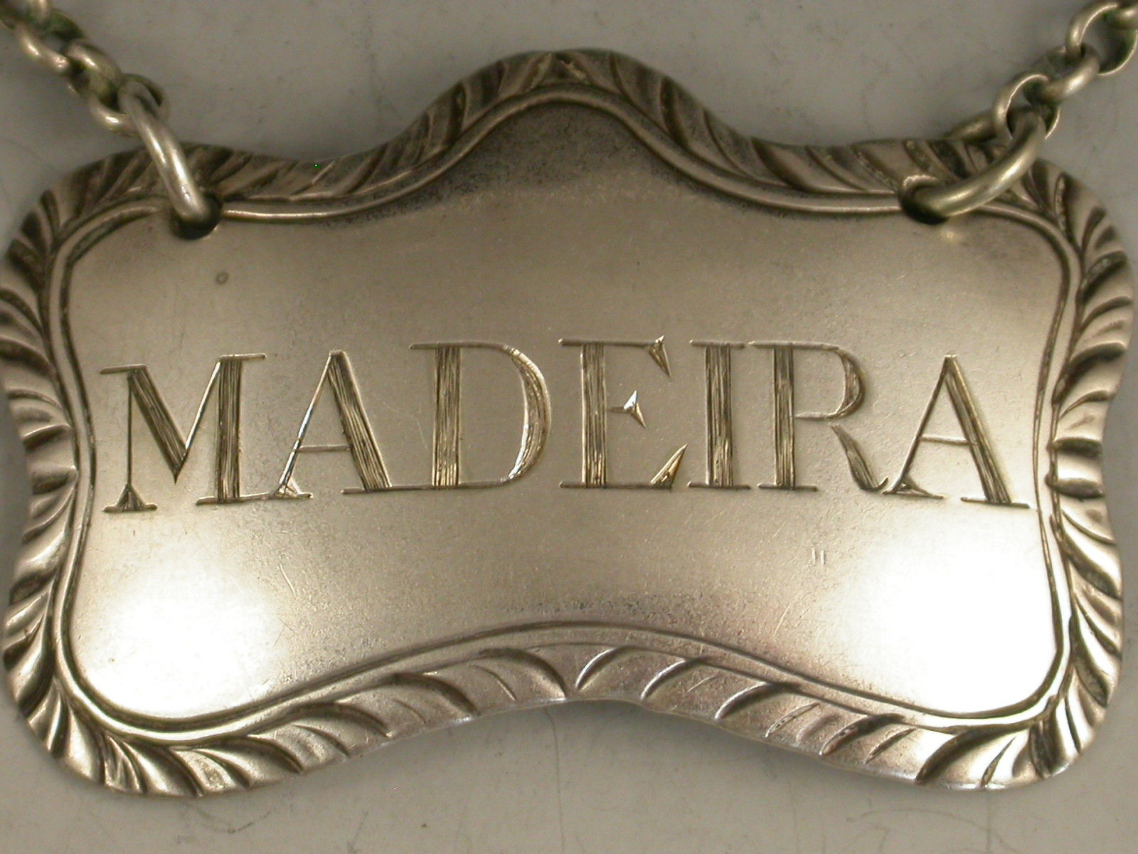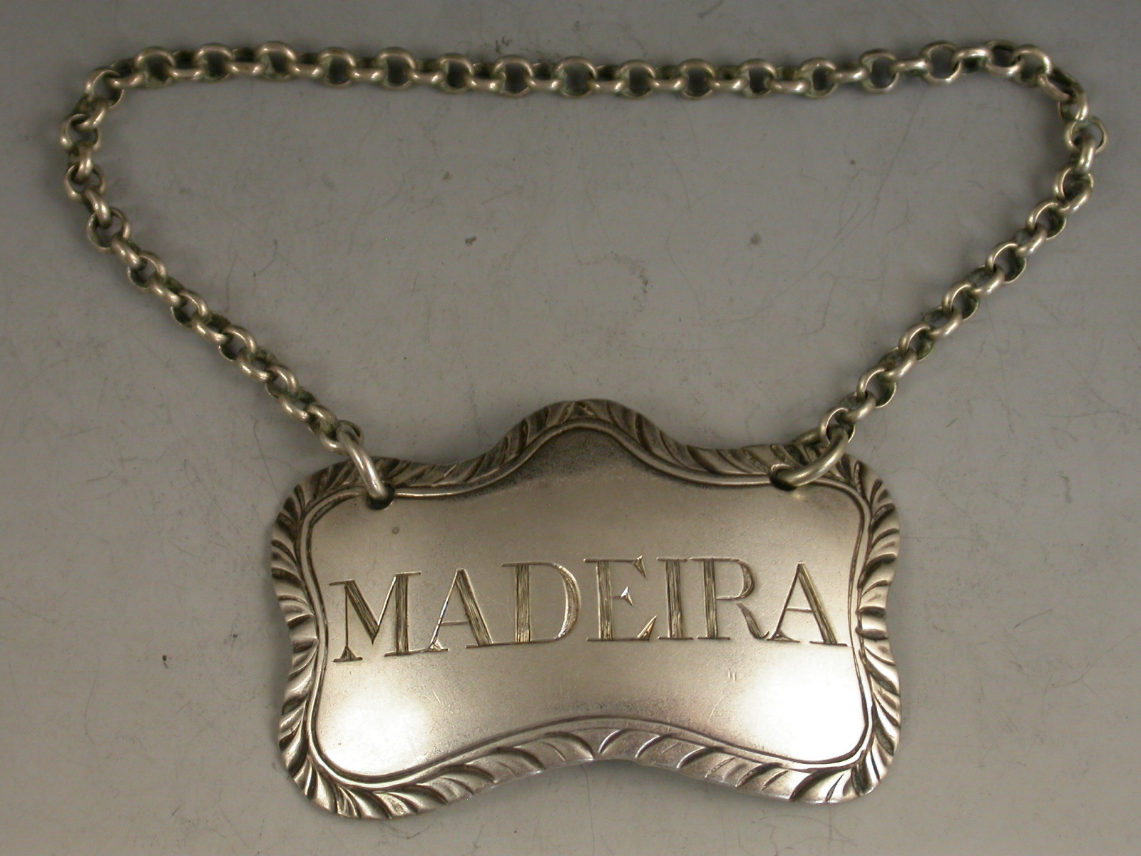 George III Antique Silver Cushion Shaped Wine Label 'Madeira'