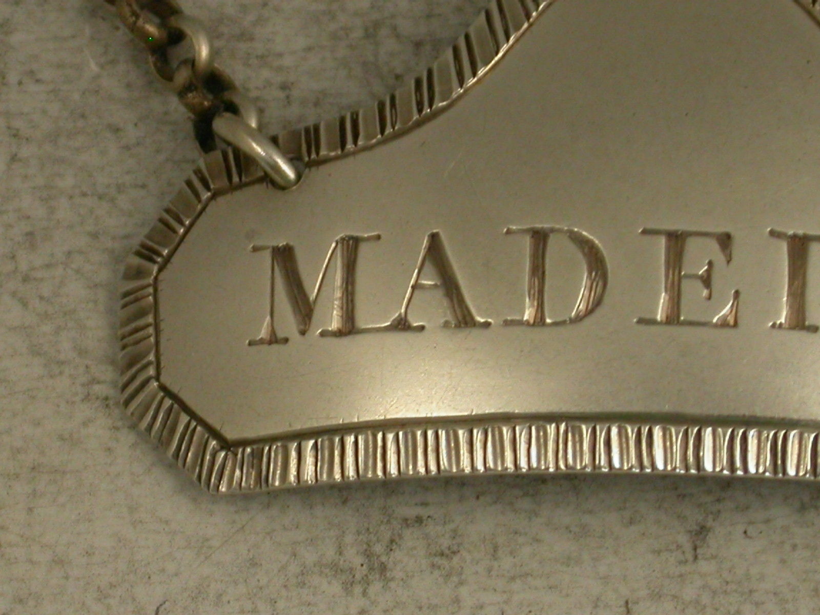 George III Antique Silver Domed Top Wine Label 'Madeira'