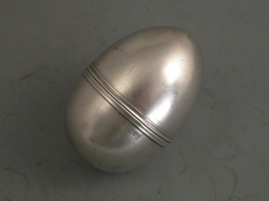 A good George III silver Nutmeg Grater of perfectly plain egg shape with reeded girdle, opening at the centre to reveal pull out steel grater.