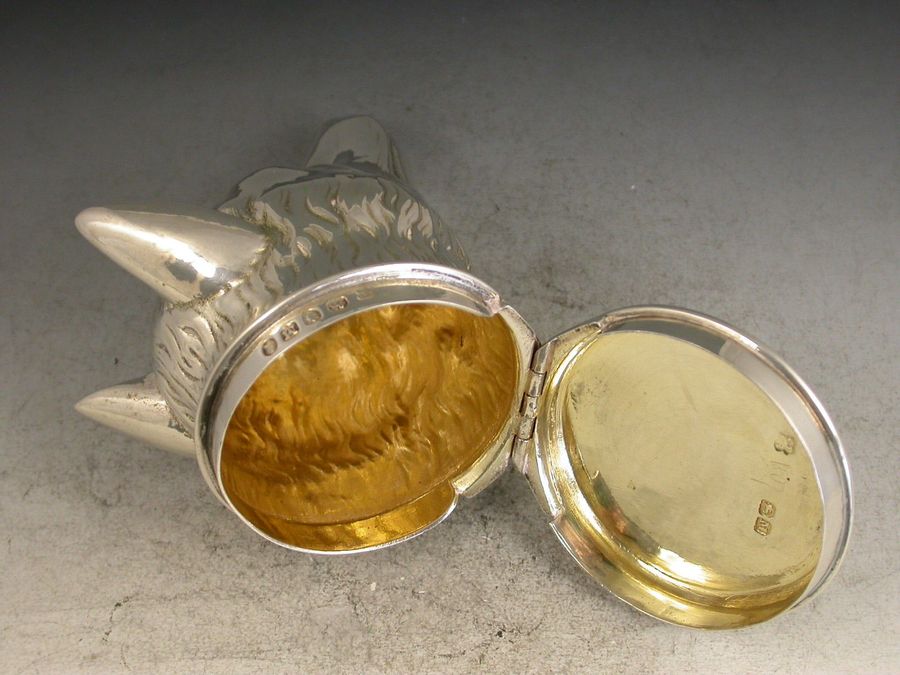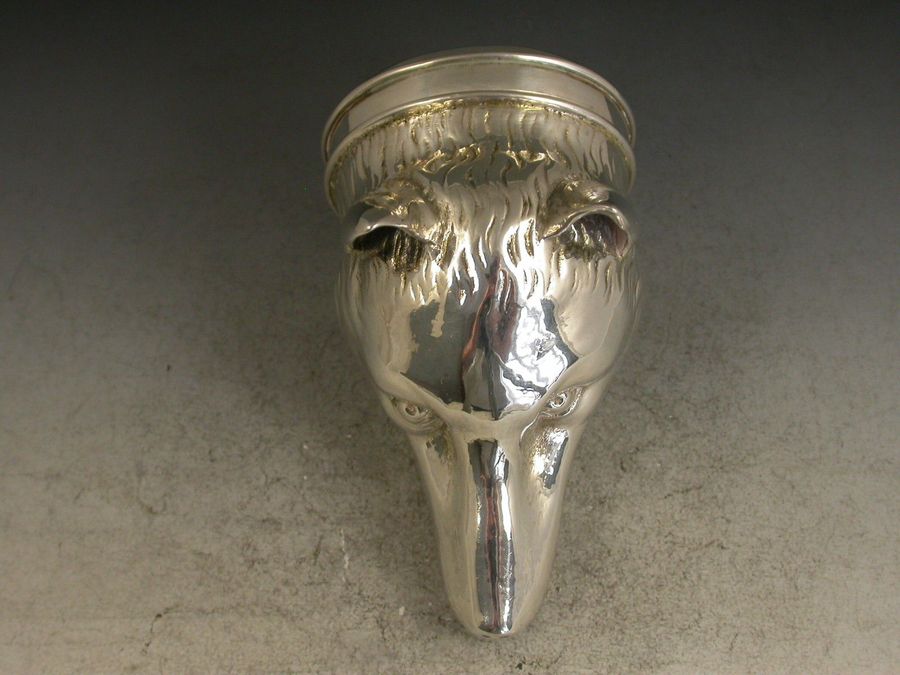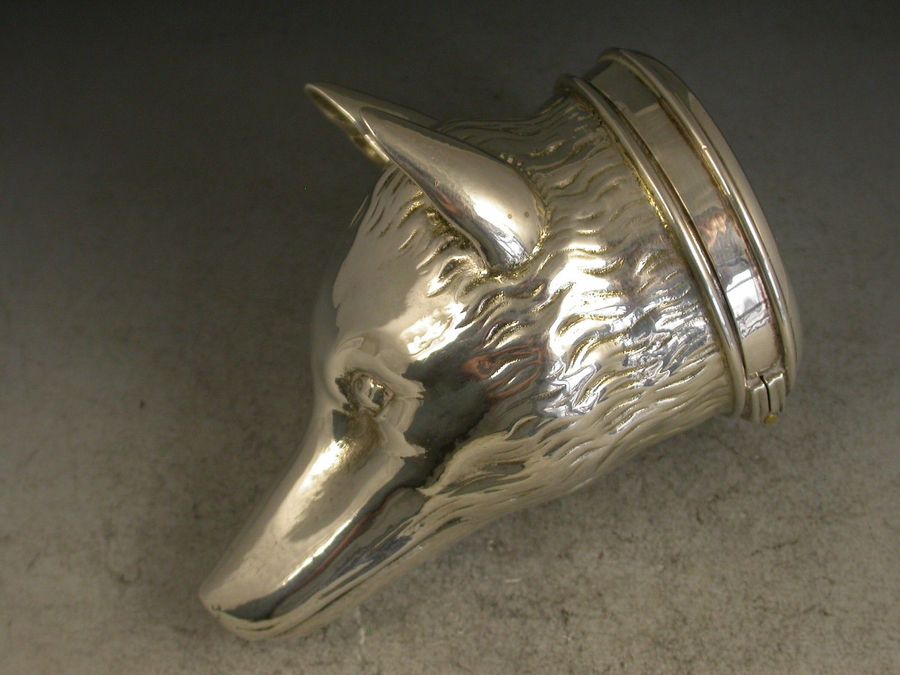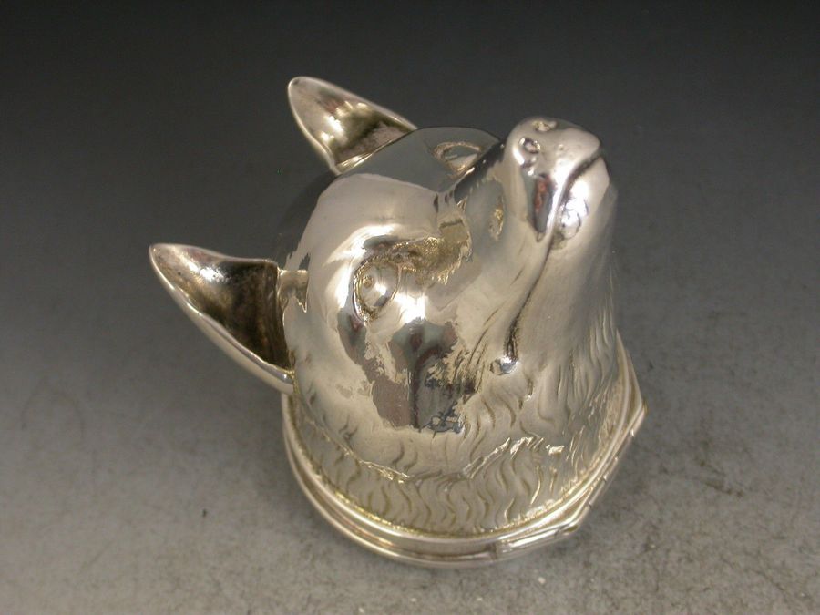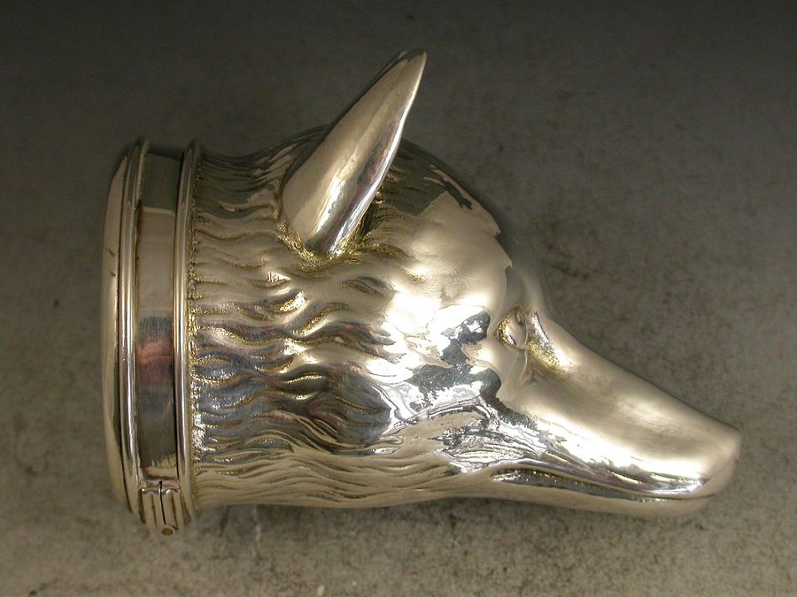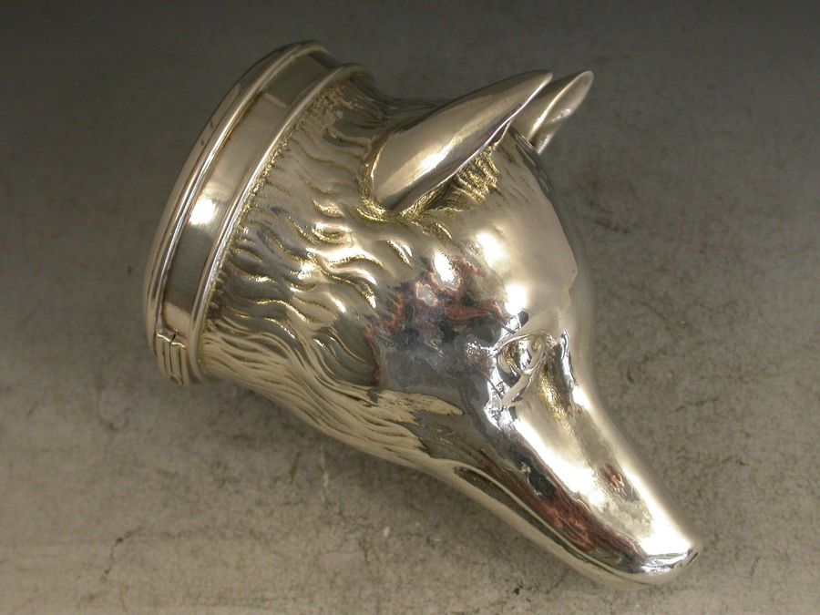 A nice quality George III silver Snuff Box made in the form of a Foxes Head, with hinged circular cover engraved with a contemporary crest and with silver gilt interior.