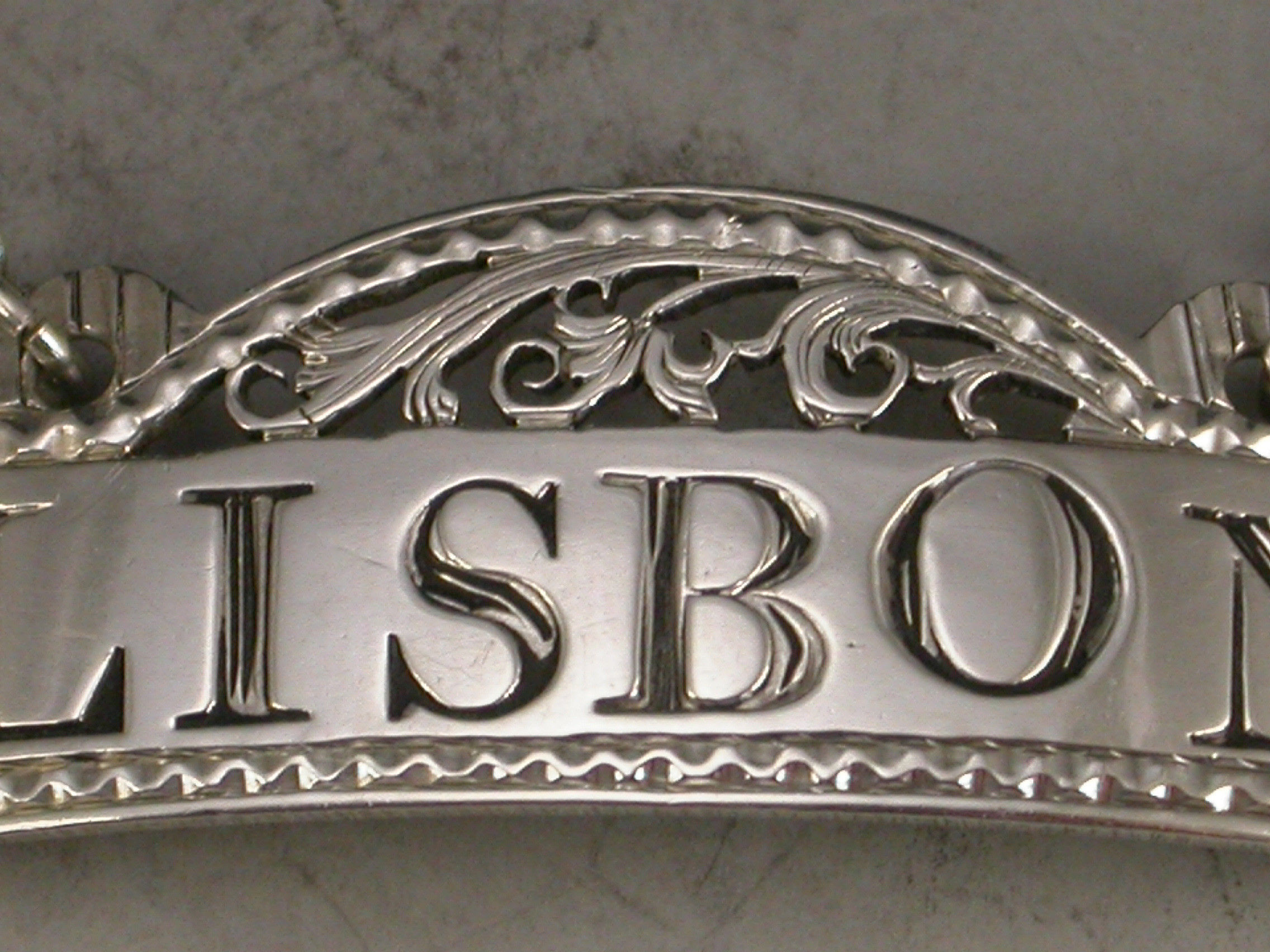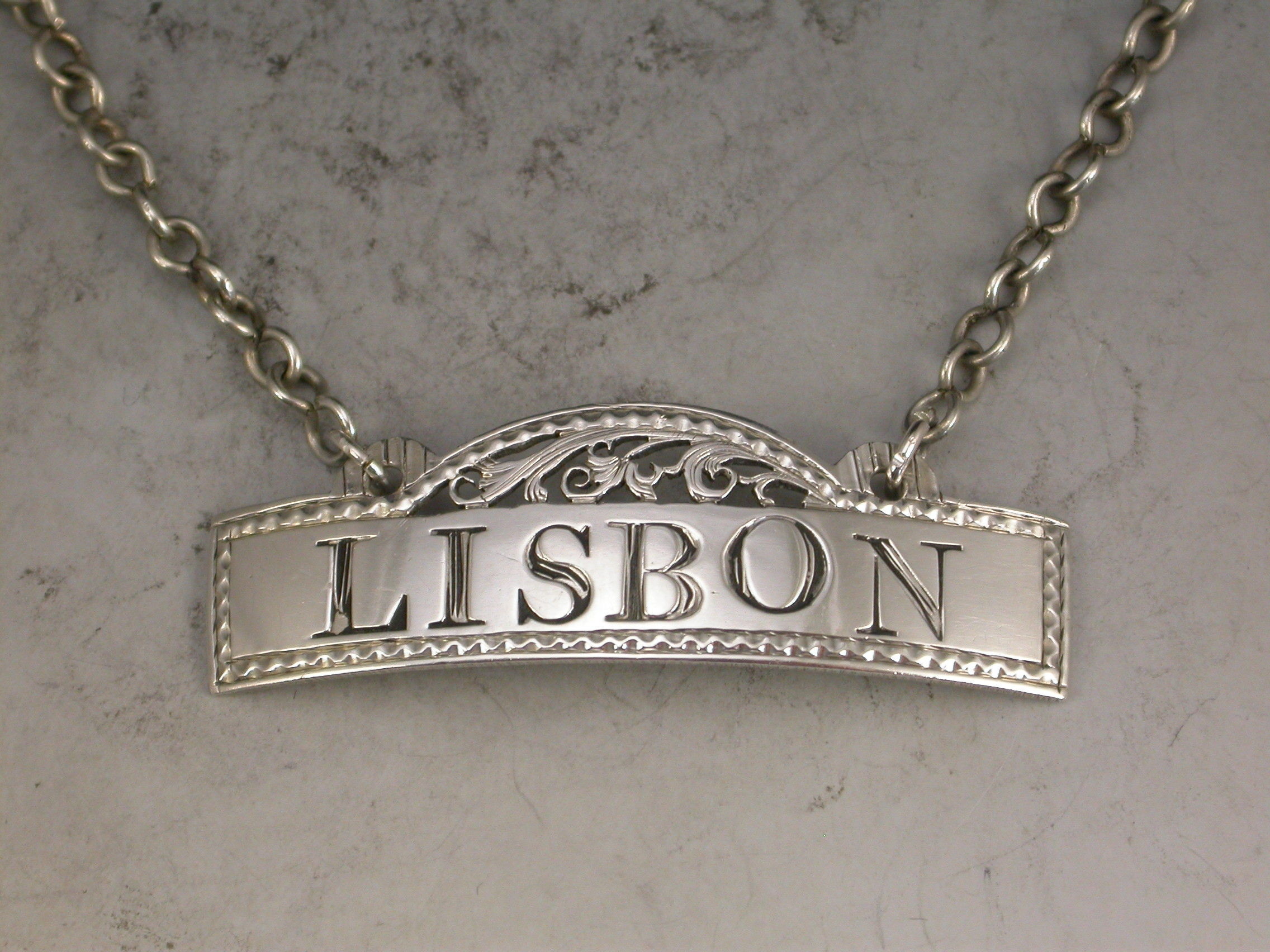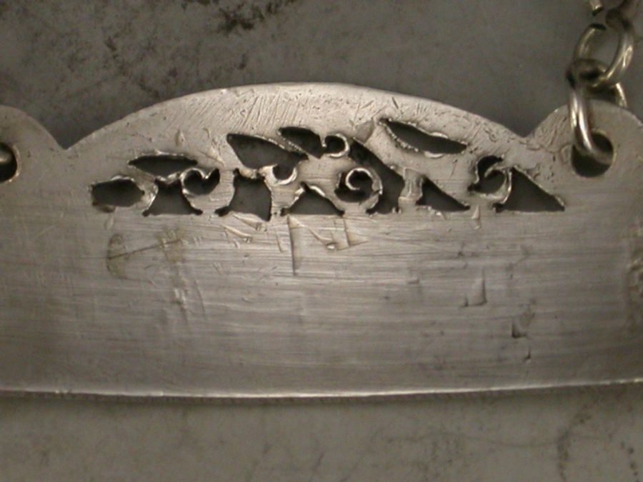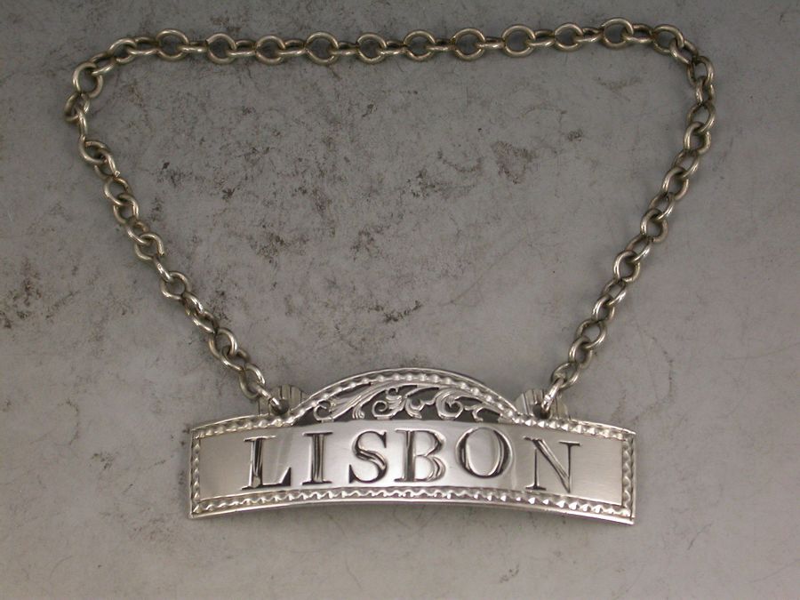 George III Antique Silver Fret Domed Rectangular Wine Label 'Lisbon'