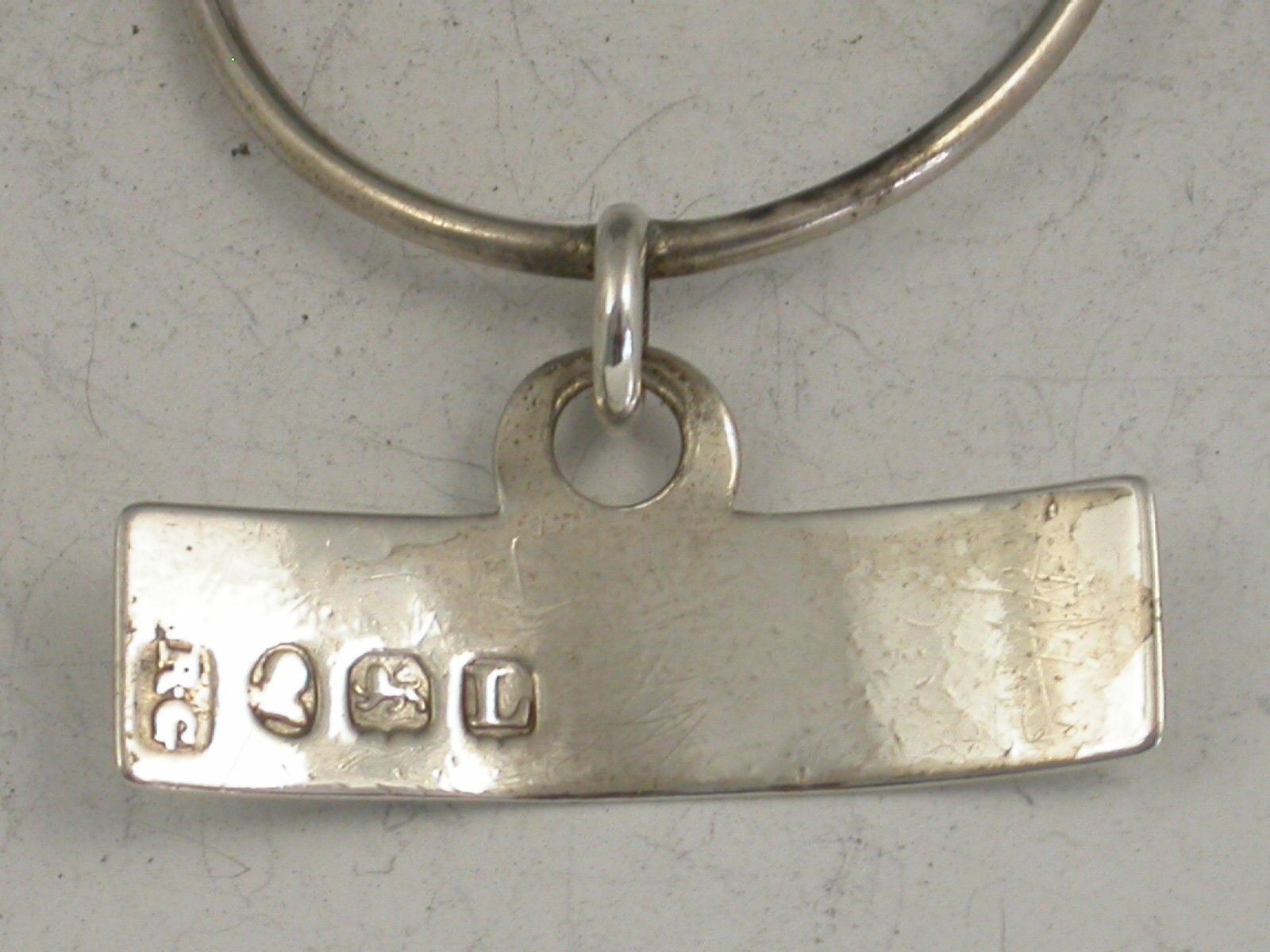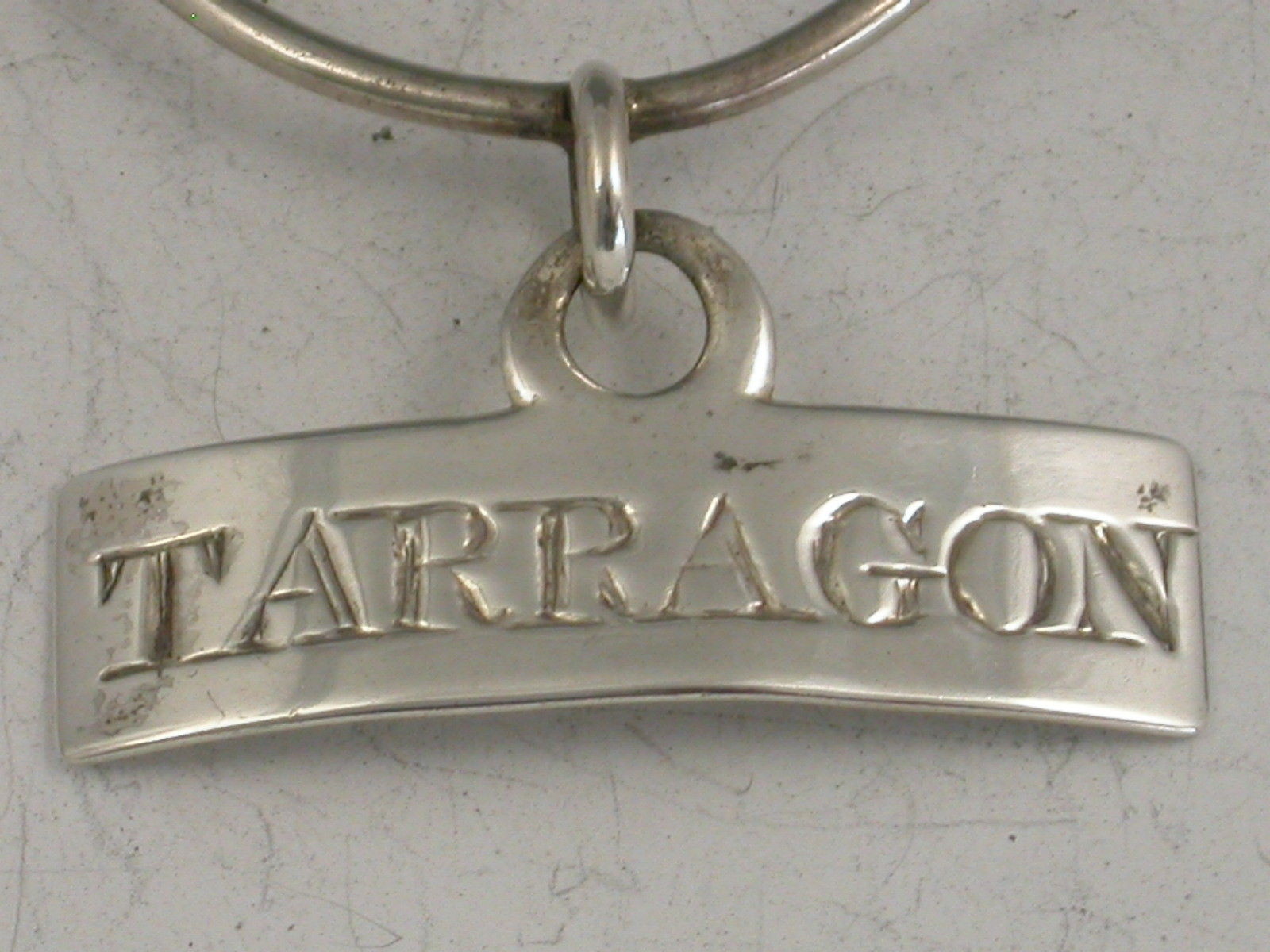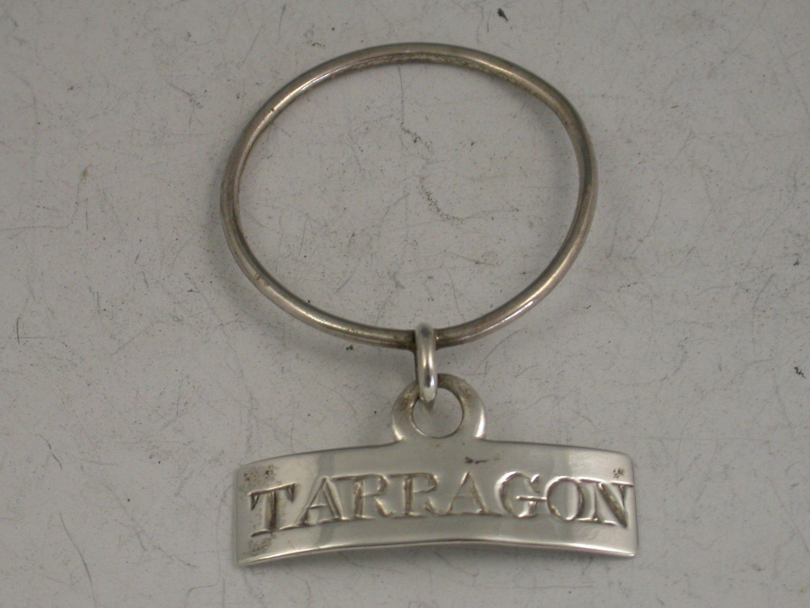A good George III silver Sauce Label of neck ring form, the rectangular label with single suspension loop attached to circular silver wire support, incised for Tarragon.