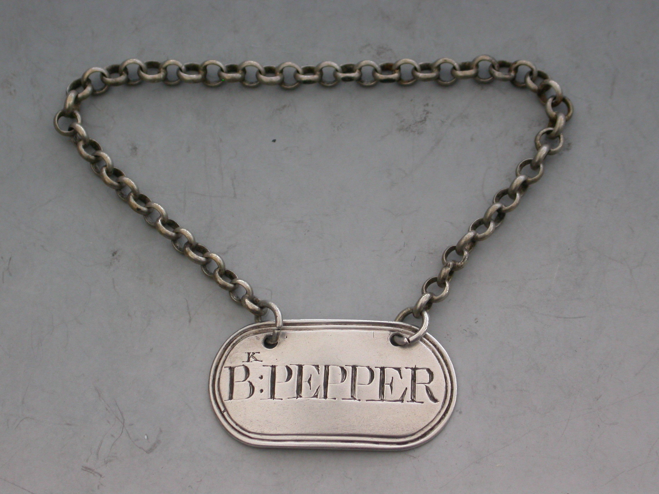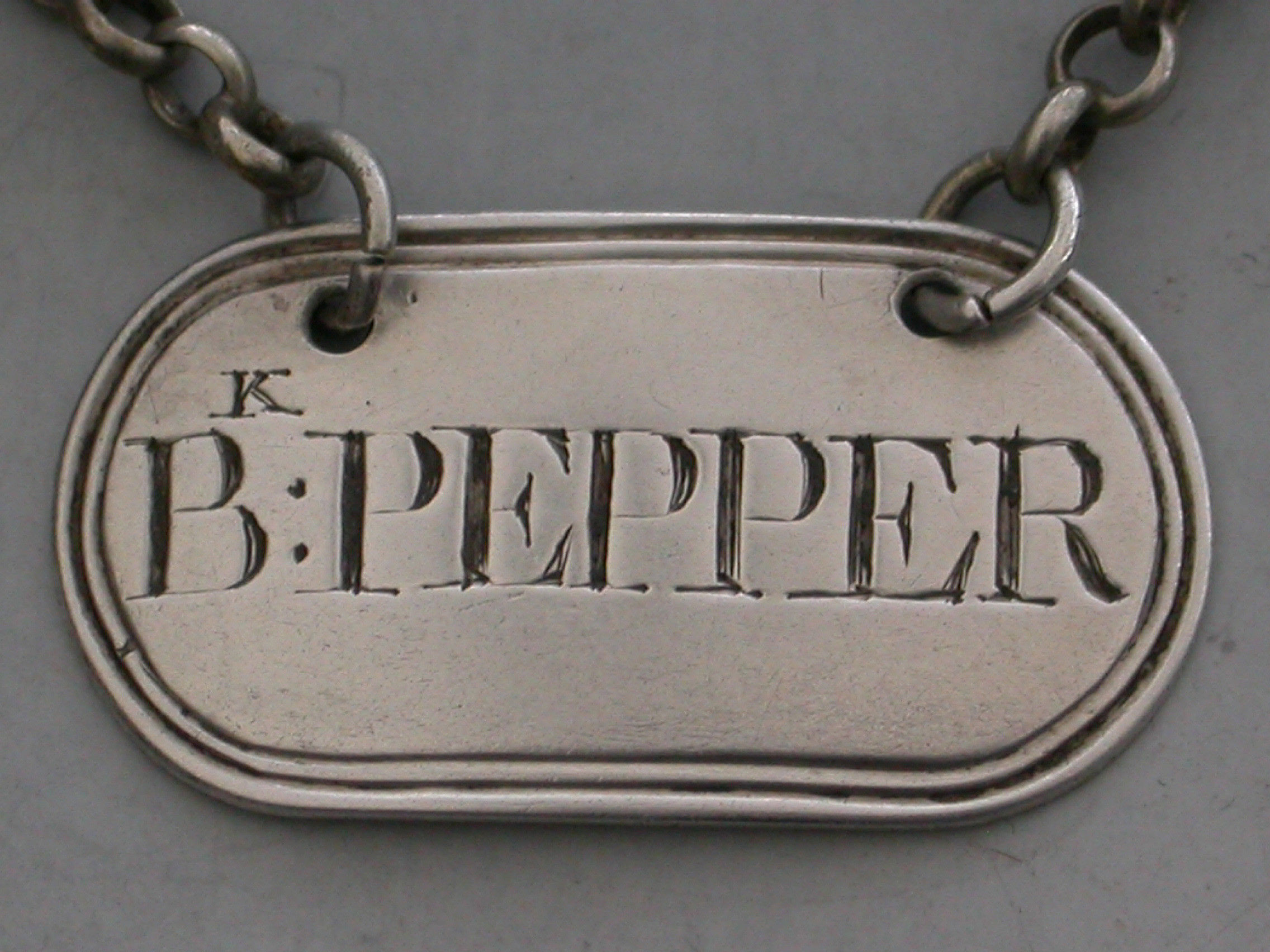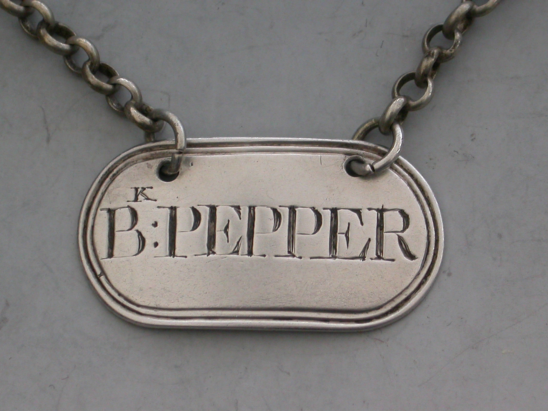 George III Antique Silver Sauce Label 'Bk:Pepper'