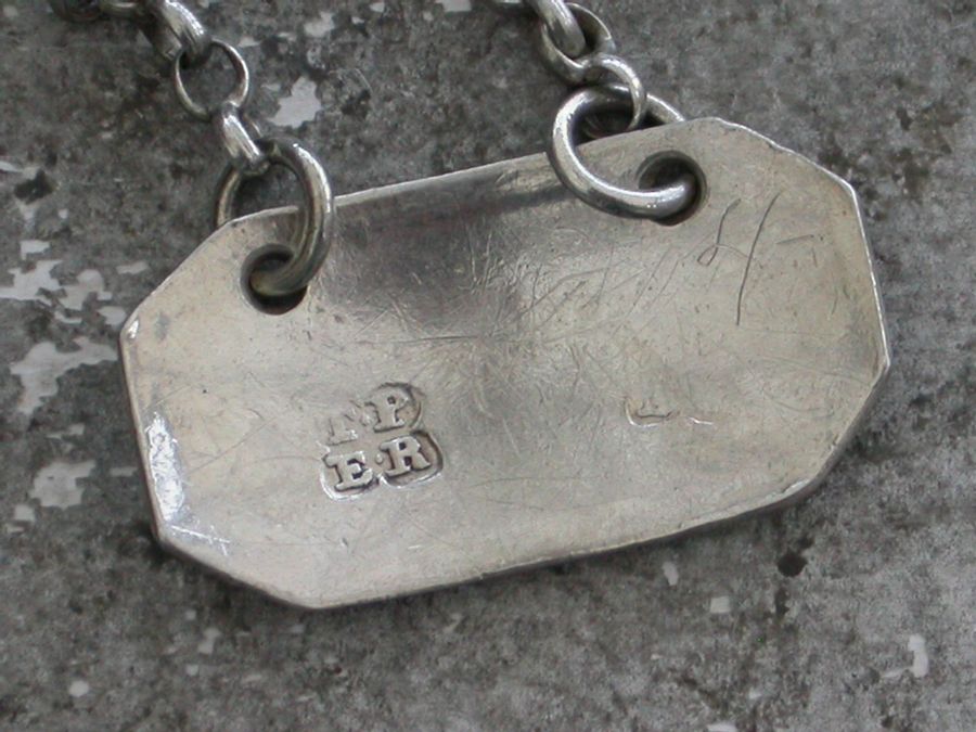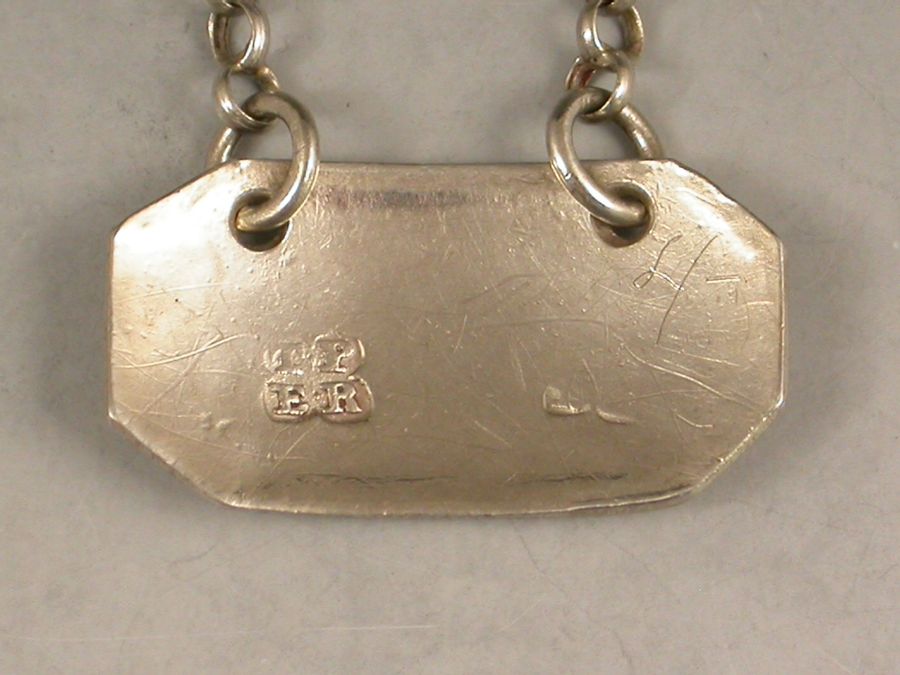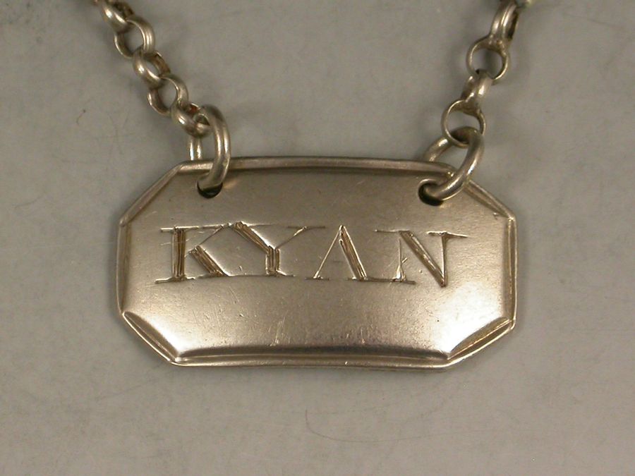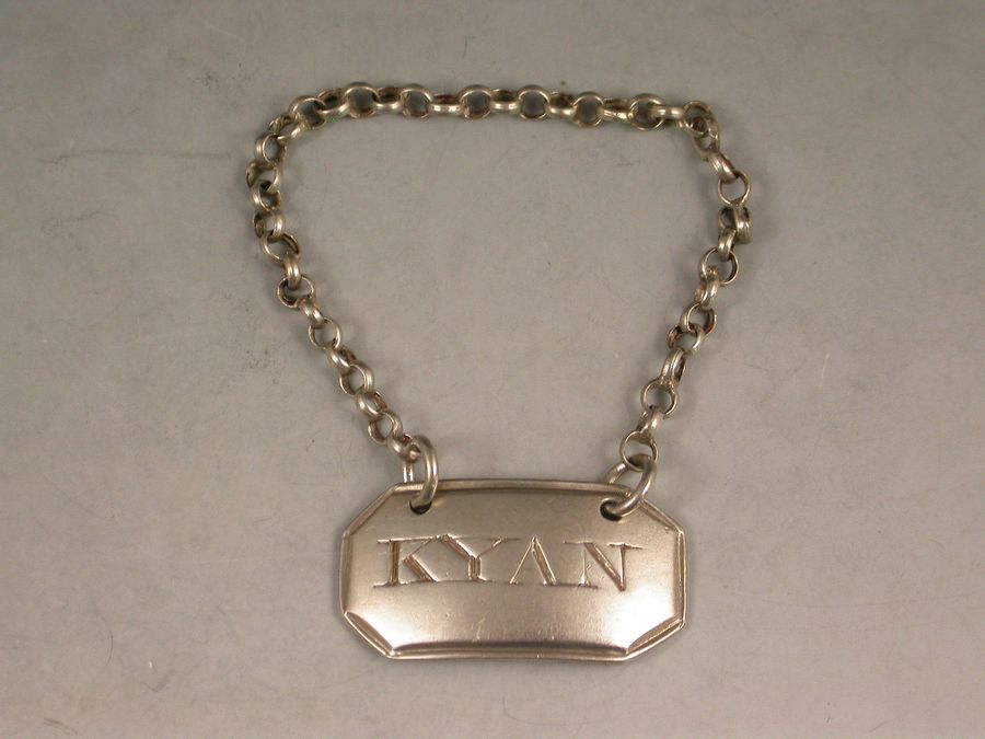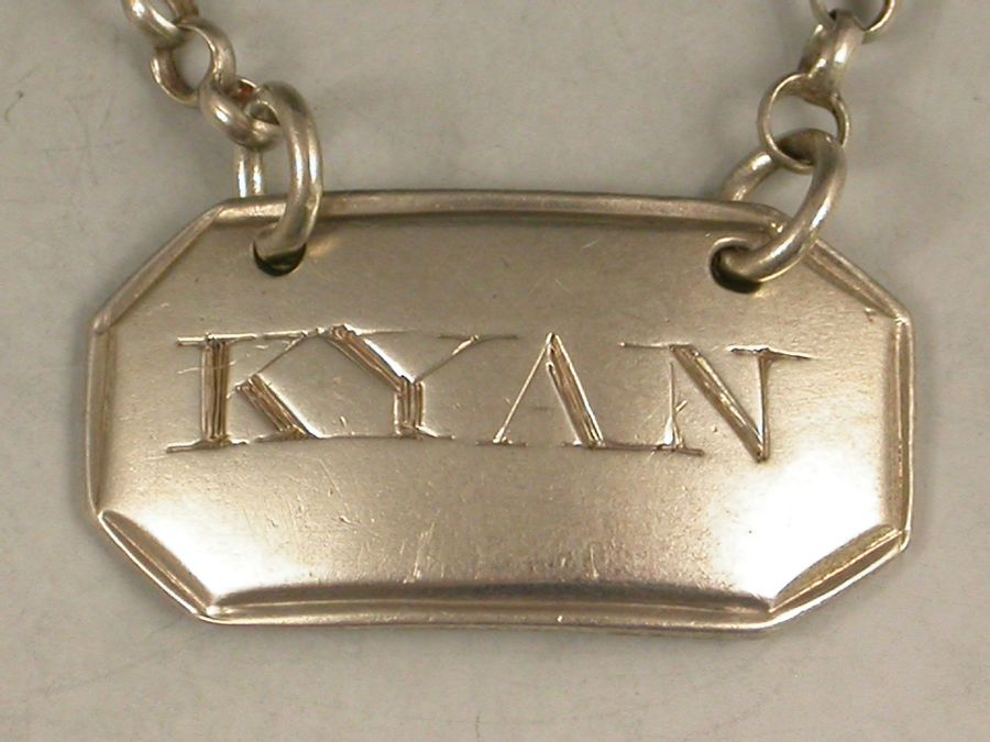 A George III silver Sauce Label of cut-cornered rectangular form with single reeded border, incised for Kyan.