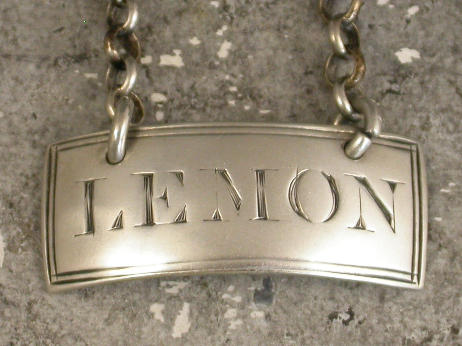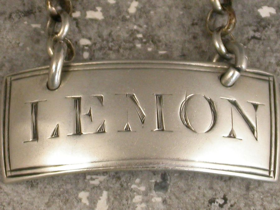 A good George III silver Sauce Label of curved narrow rectangular form with double reeded border, incised for Lemon.