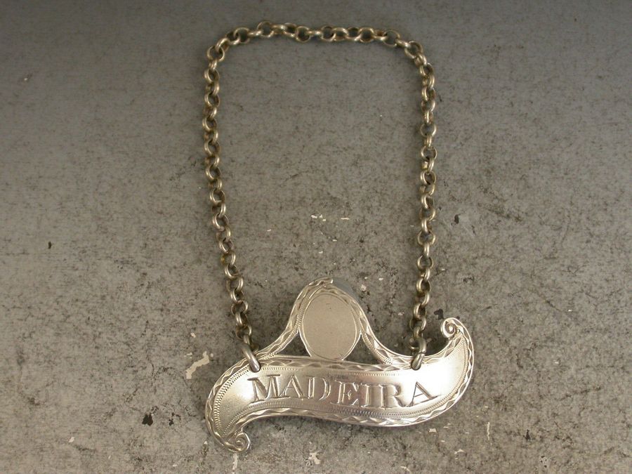 George III Antique Silver Small Scroll Wine Label 'Madeira'