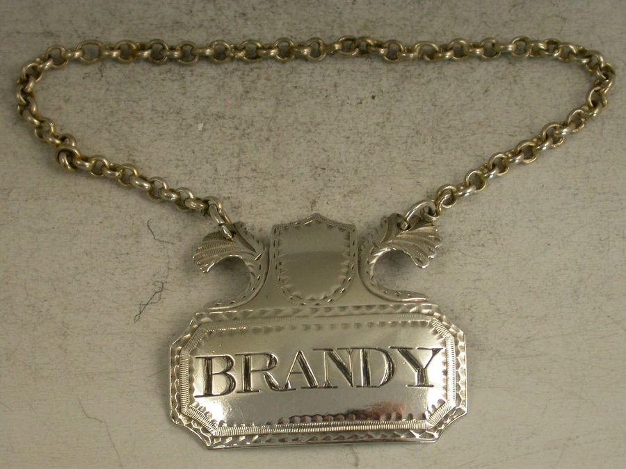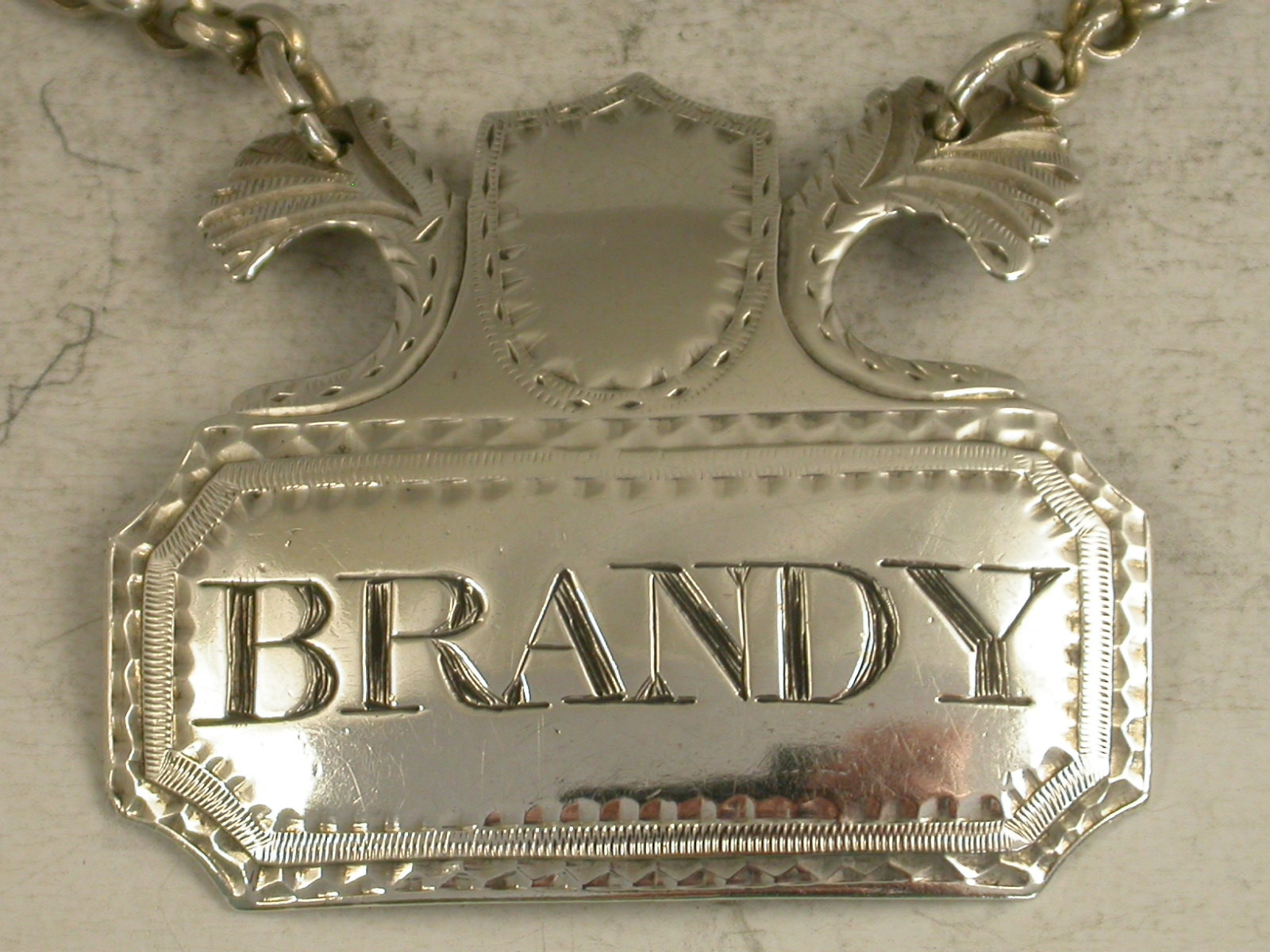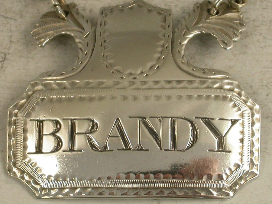 George III Antique Silver Wine Label 'Brandy ' Cornucopia