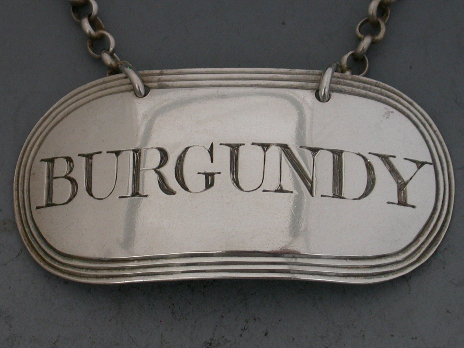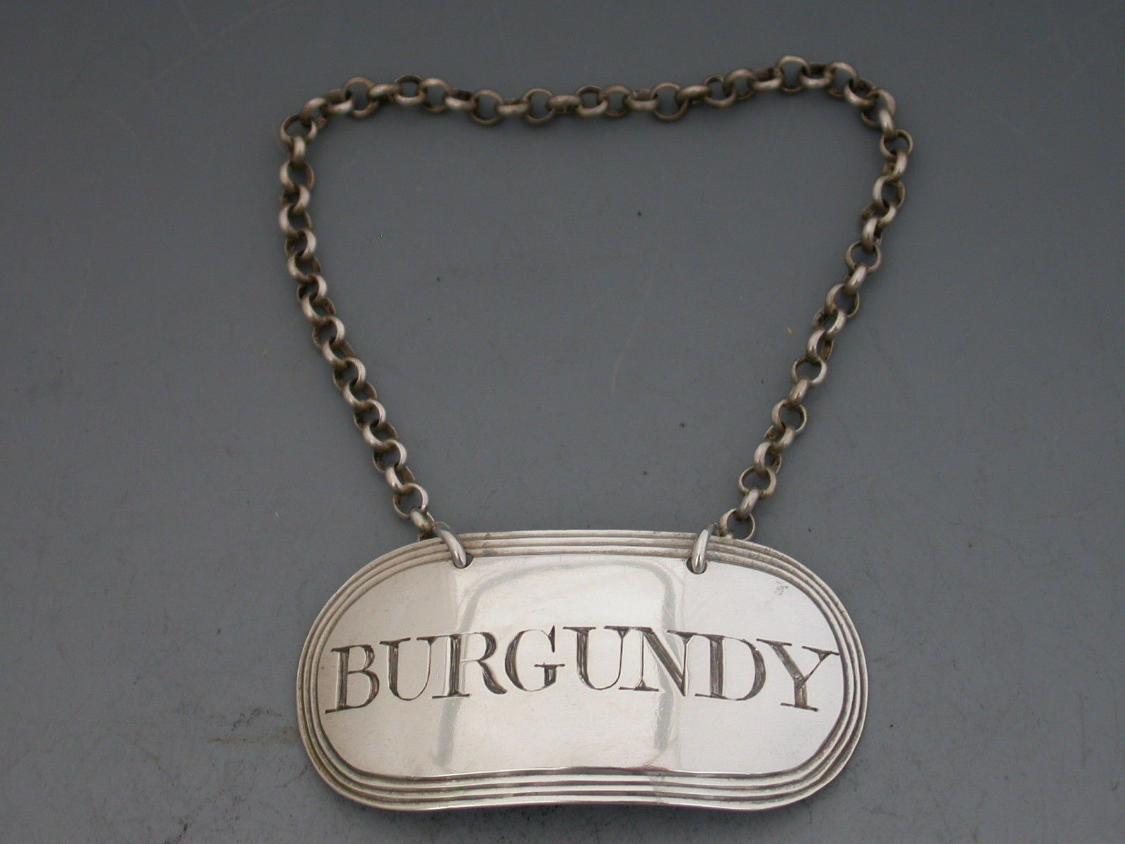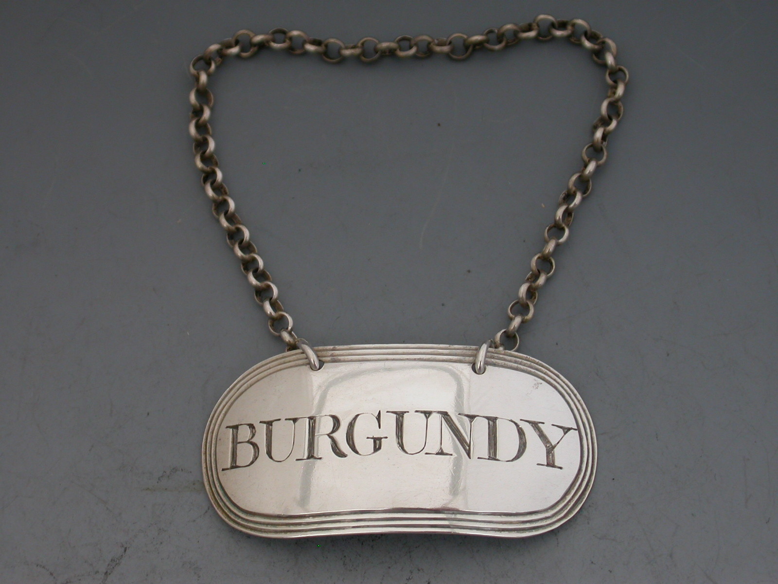 A good George III silver Wine Label of rounded rectangular form with triple reeded border, incised for Burgundy.