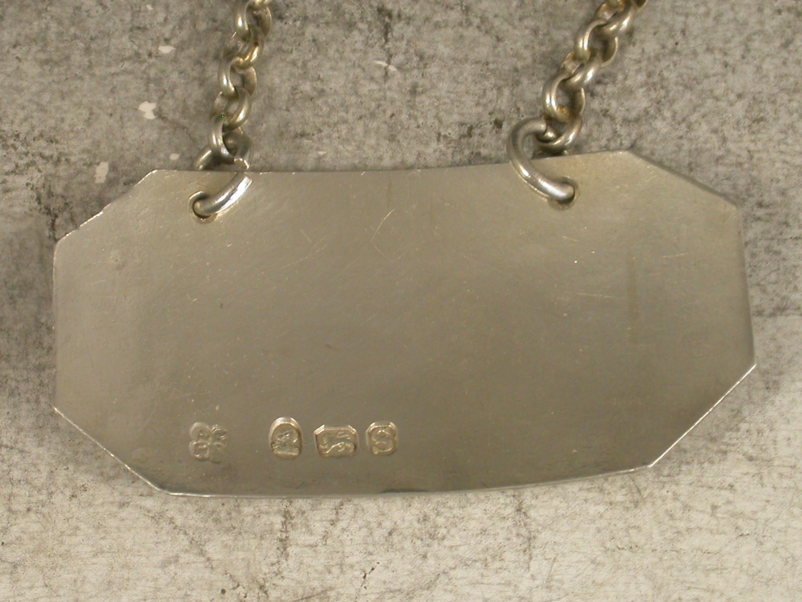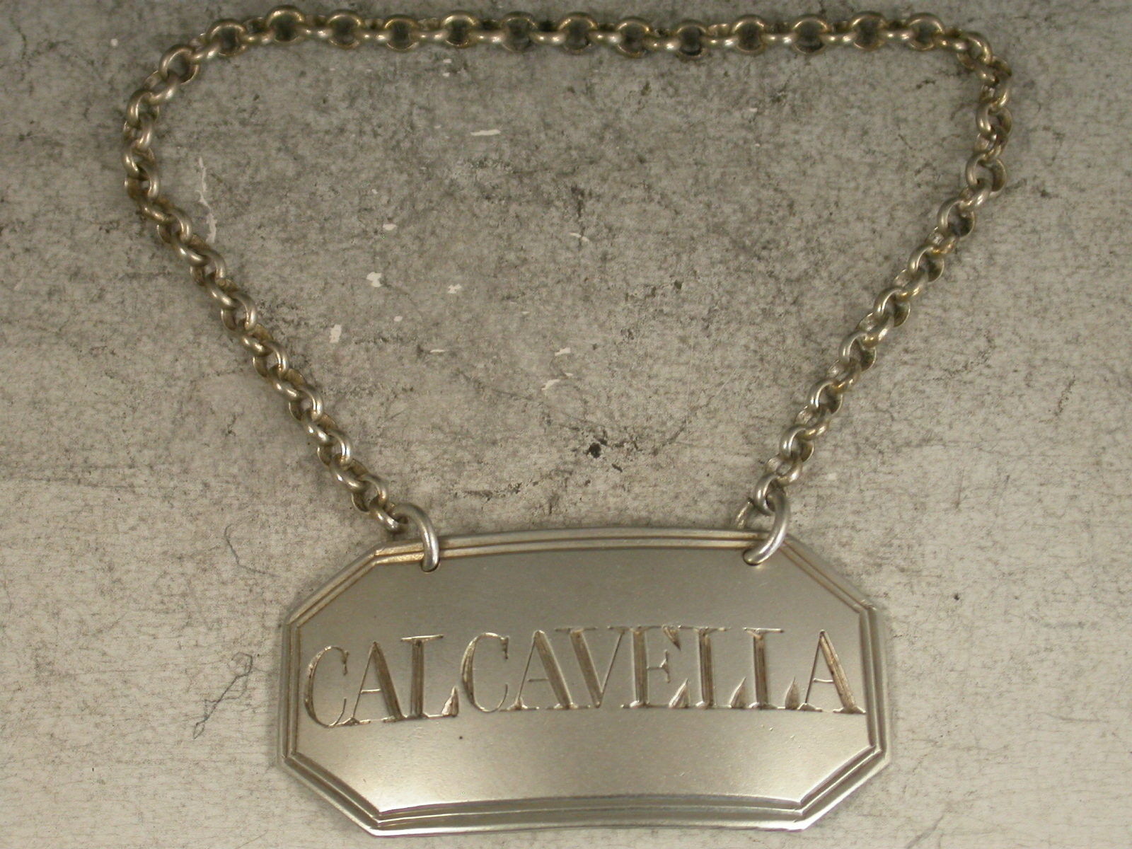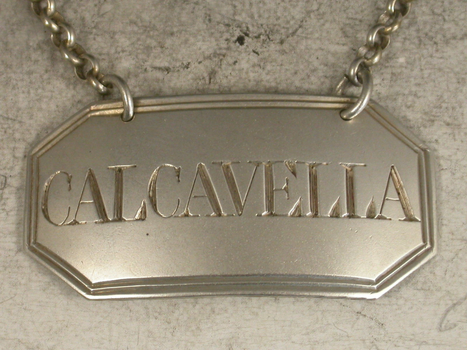 A George III silver Wine Label of cut-cornered rectangular form with double reeded border, incised for Calcavella.
