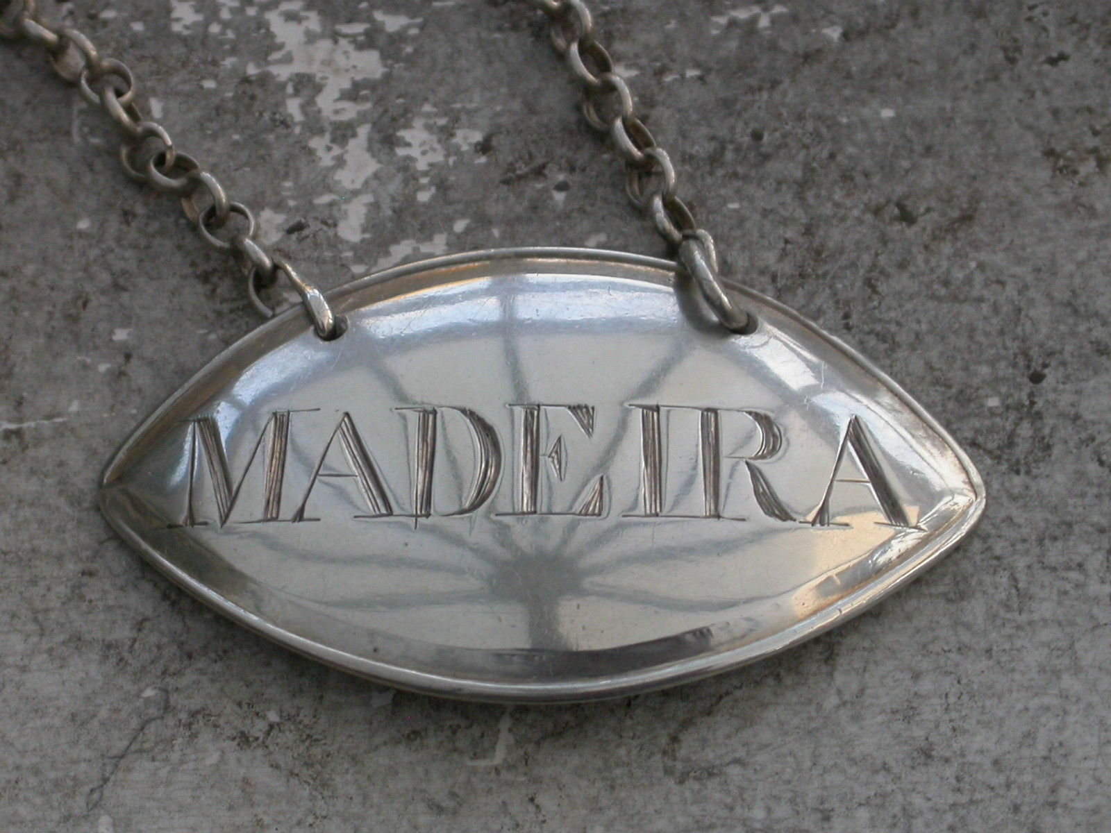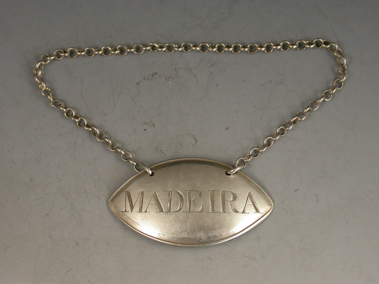 A George III silver Wine Label of plain eye shape, quite unusually with just a single reeded border, incised for Madeira.