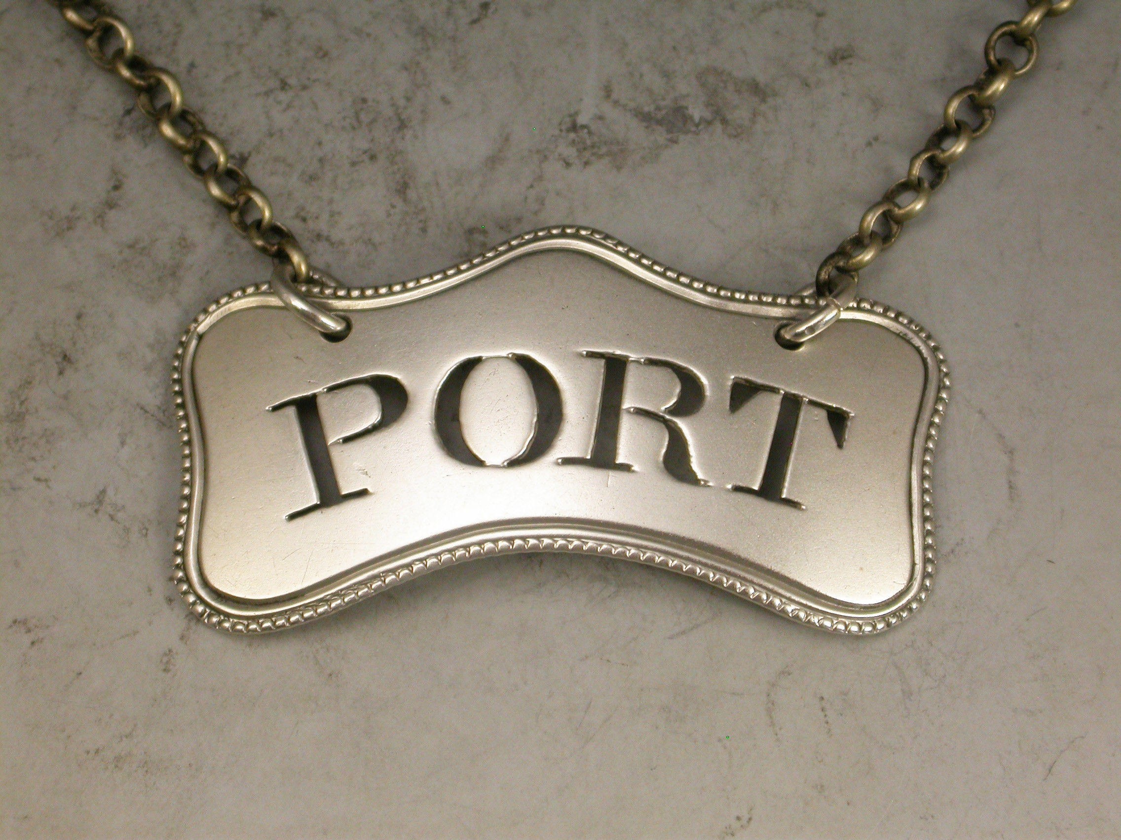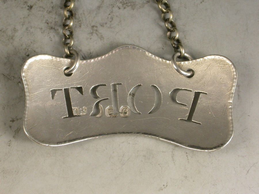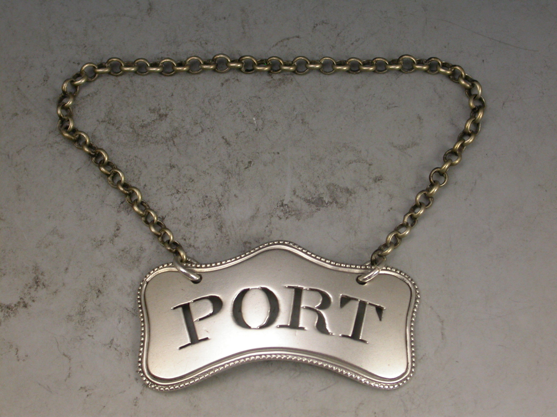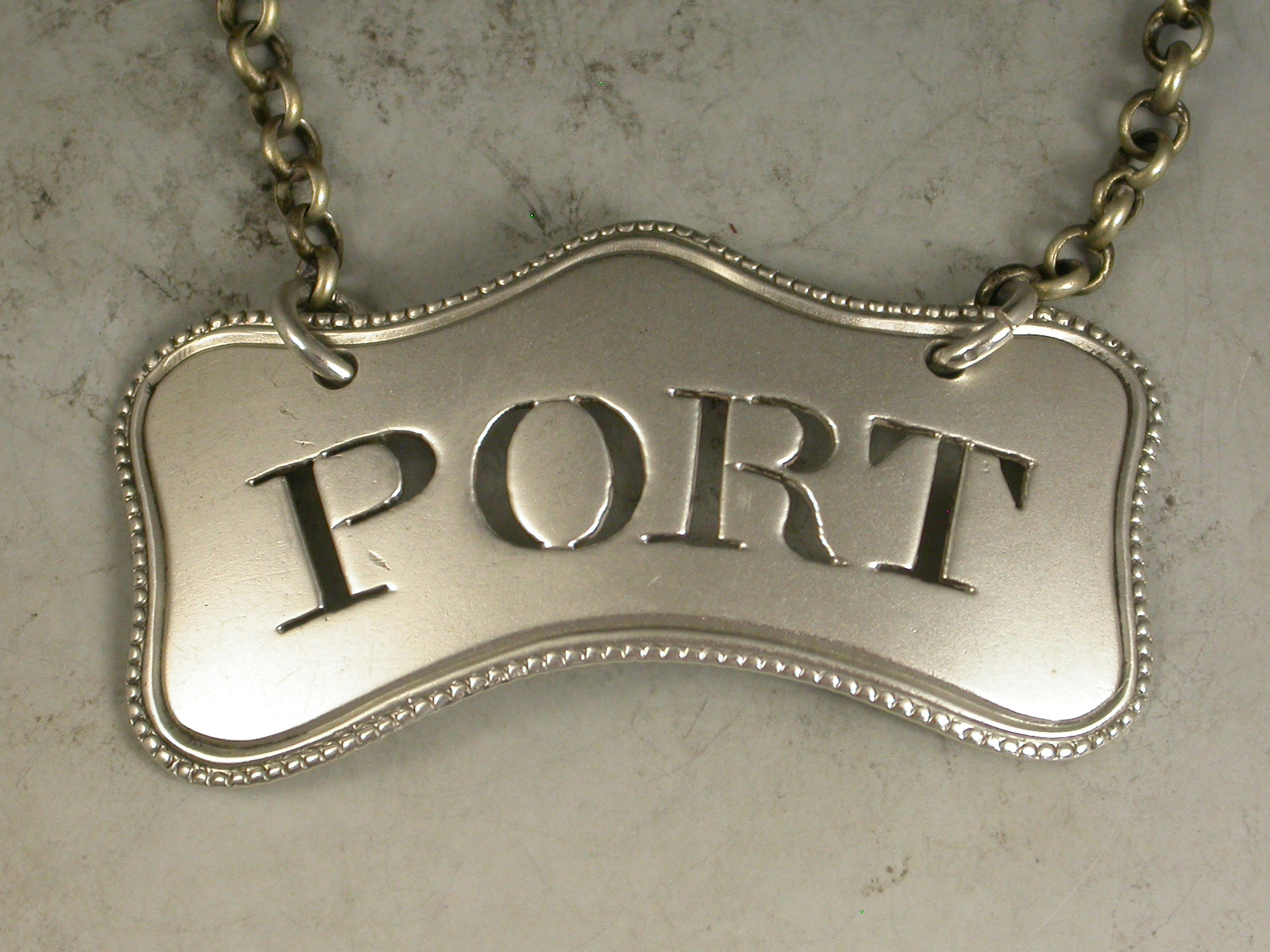 A rare George III silver Wine Label of cushion form with bead edge border, pierced for Port, and unusual with a bead edge.
