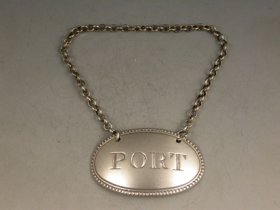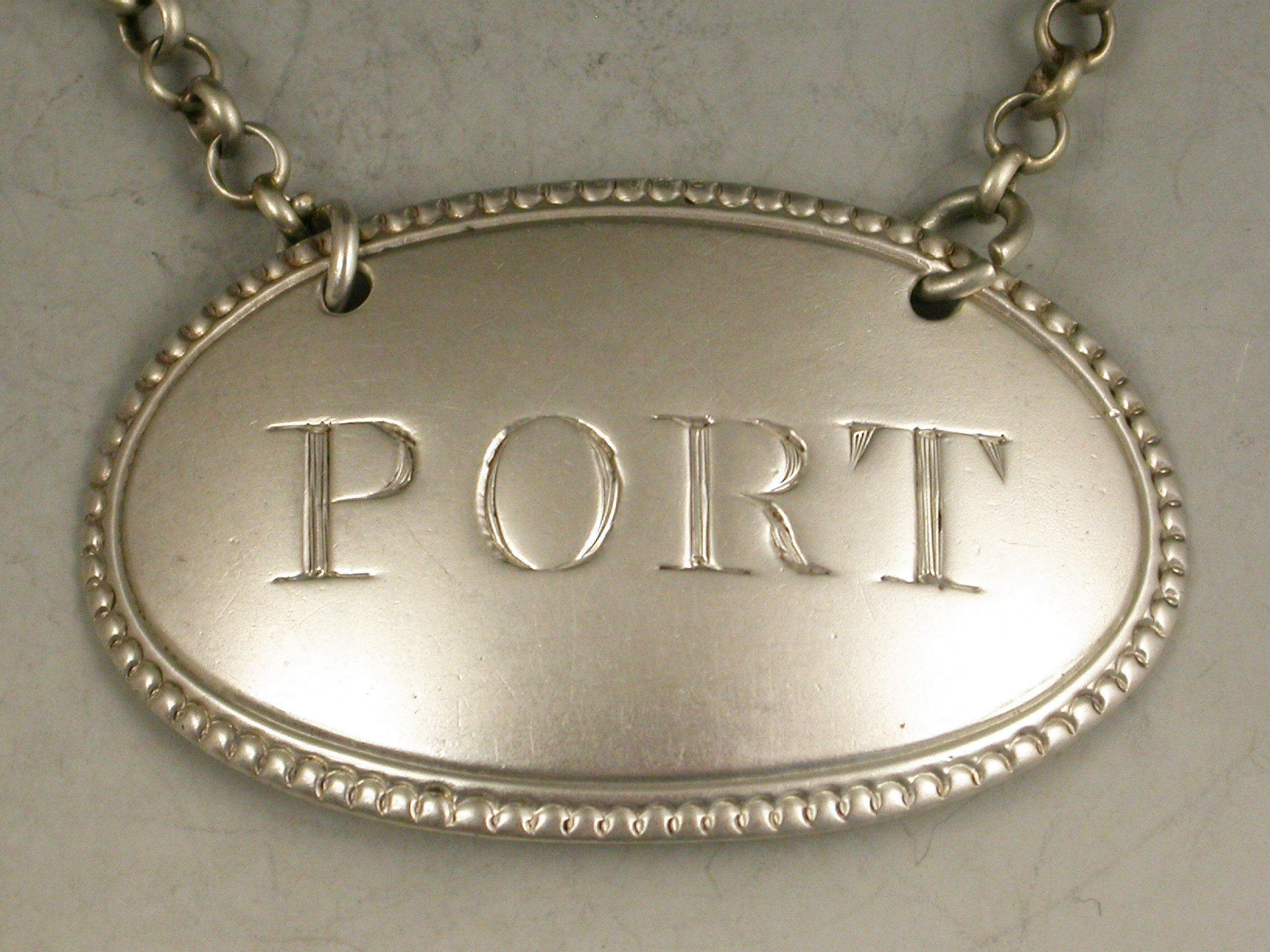 A George III silver Wine Label of oval or eye-shaped form with bead edge border, incised for Port.
