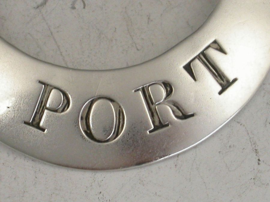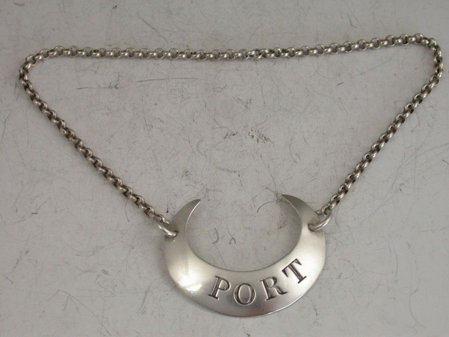 A George III 18th century silver Wine Label of plain crescent form, incised for Port.