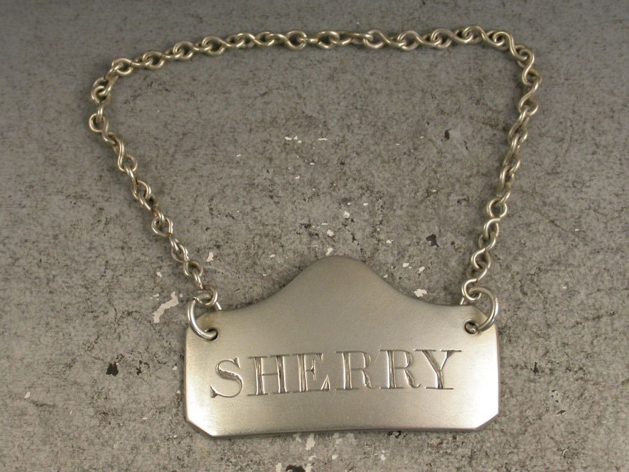 A George III silver Wine Label of plain rectangular form with cut-corners and domed surmount, incised for Sherry.