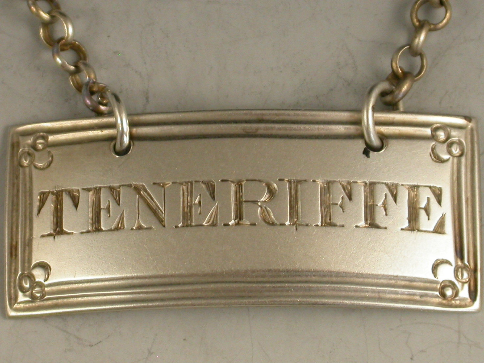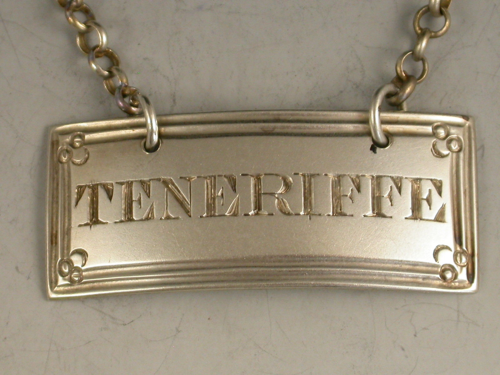 A good George III silver Wine Label of rectangular form with reeded border, an engraved device to each corner, incised for Teneriffe.