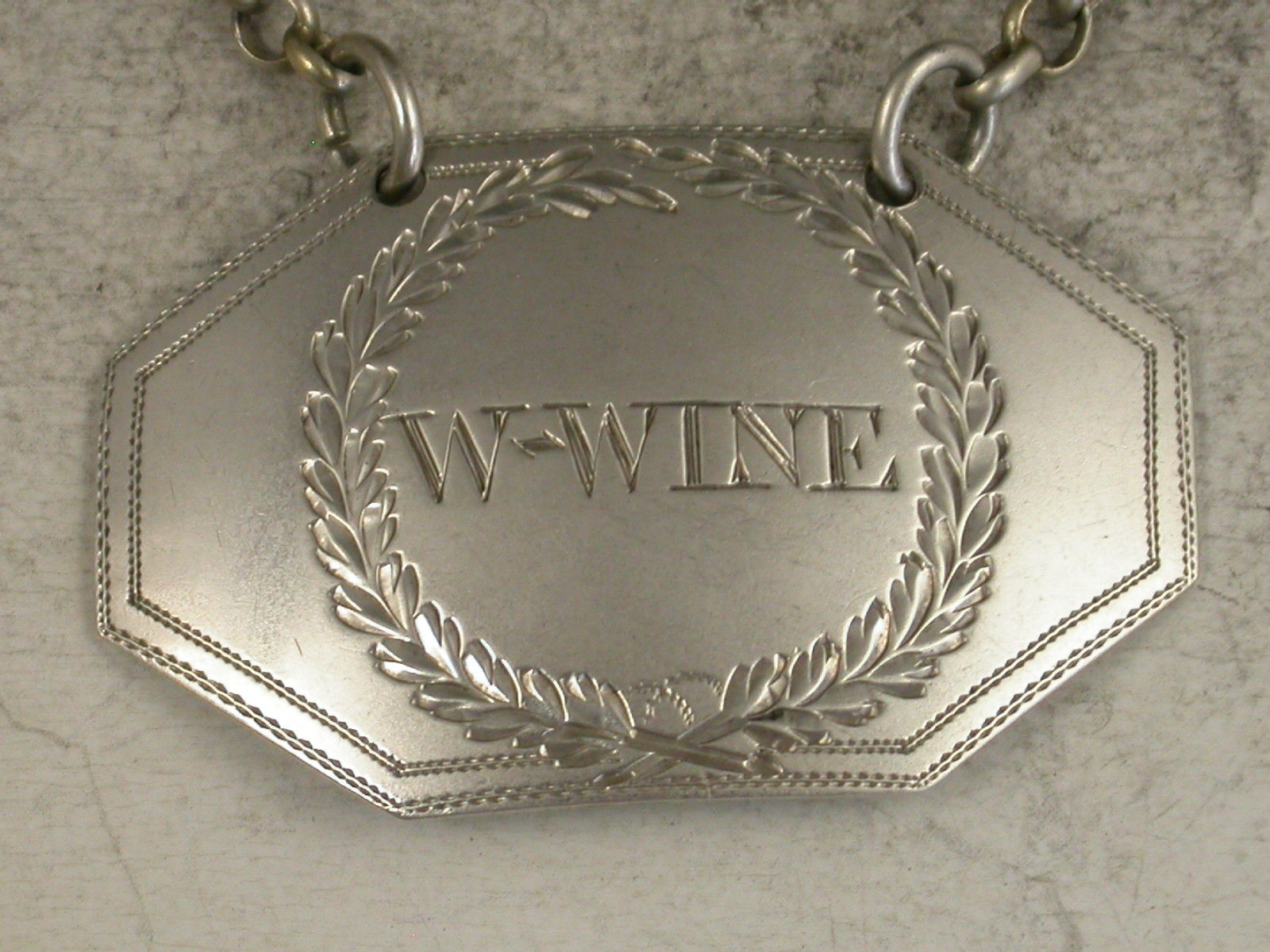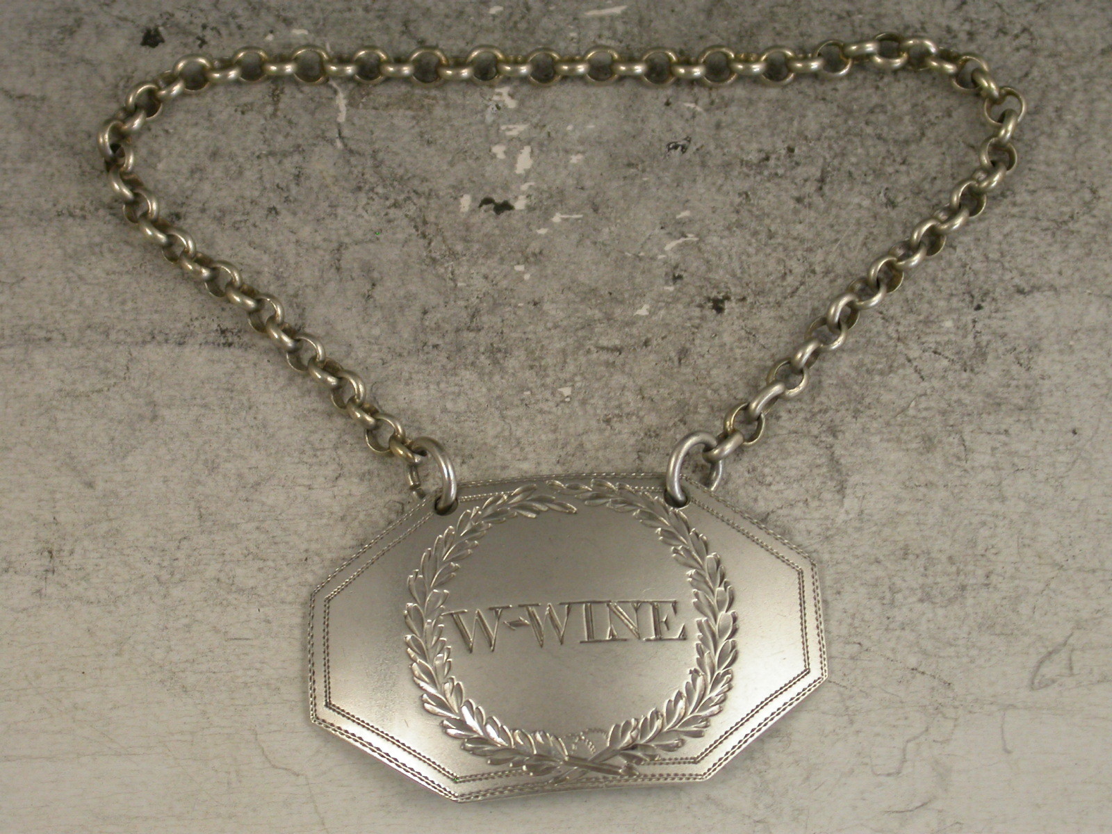 George III Antique Silver Wine Label W*Wine Wreath
