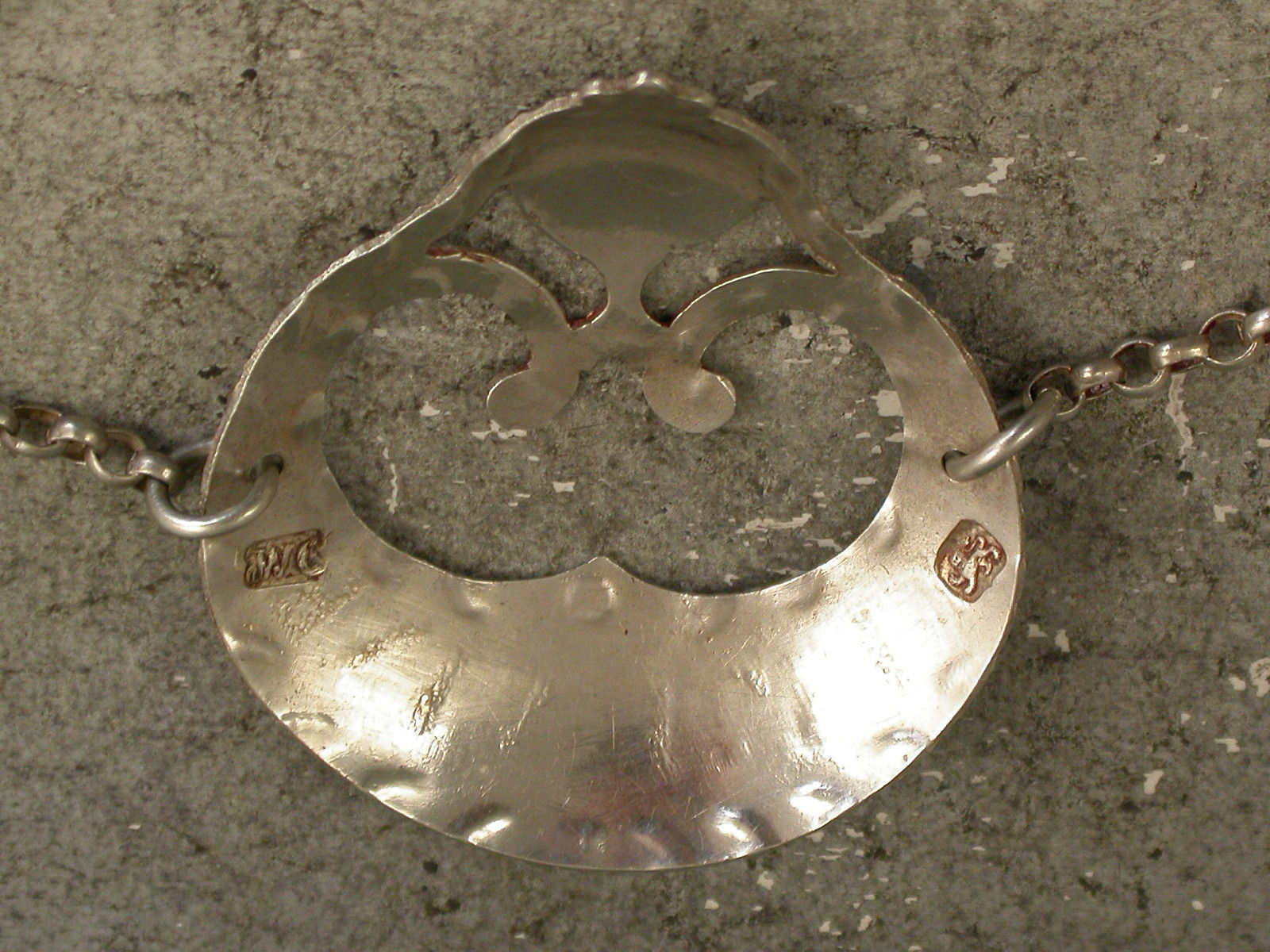A fine George III 18th century silver wine Label of enclosed crescent form with oval cartouche above supported by tied ribbon swags, feather edge border, incised for White*Wine.