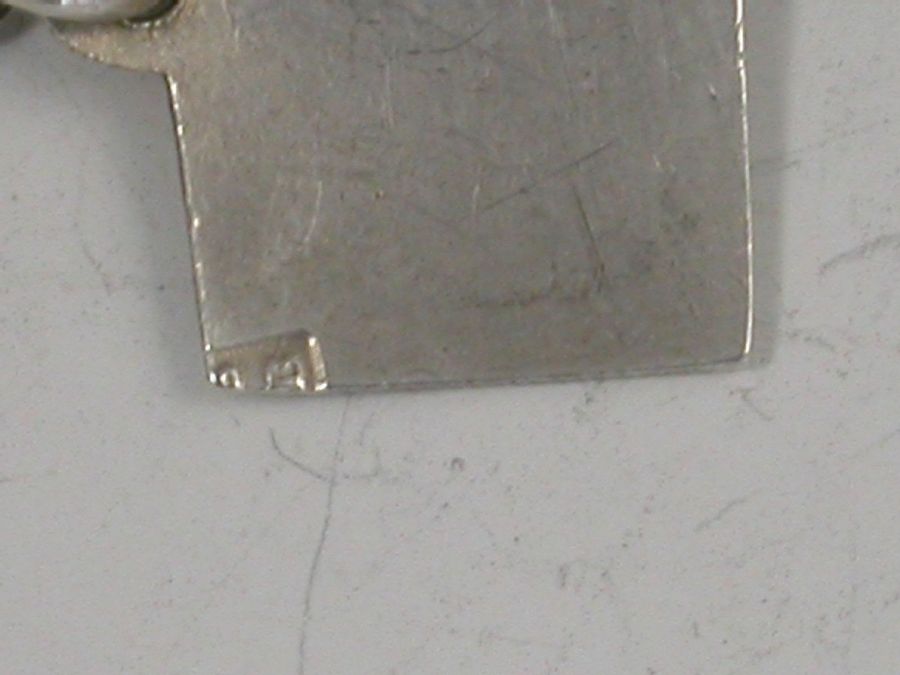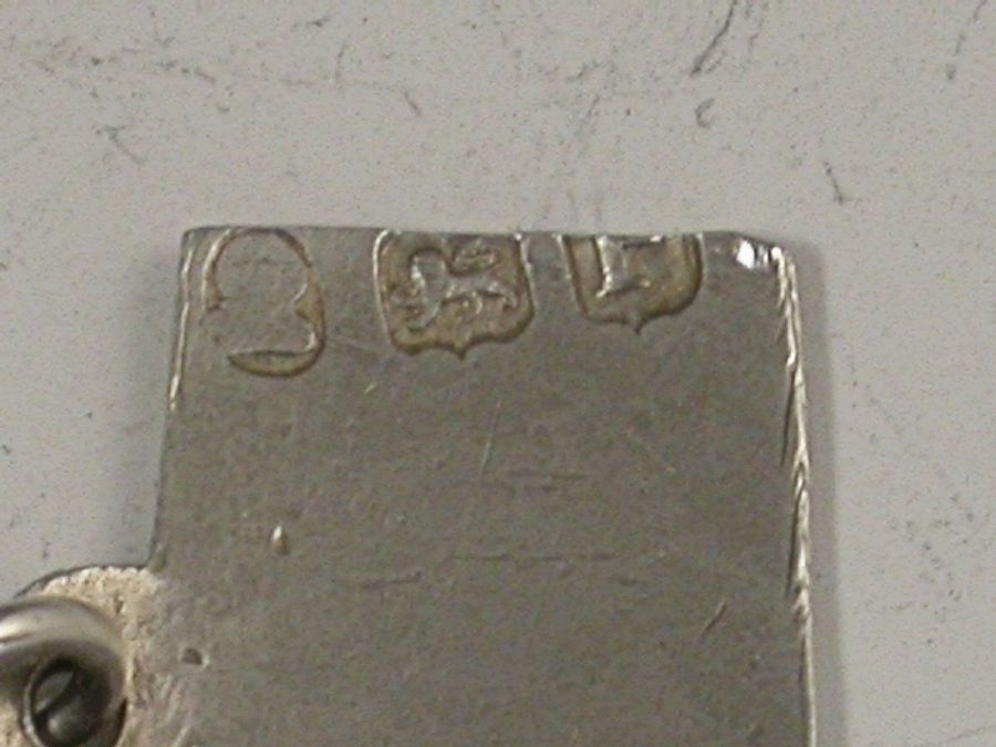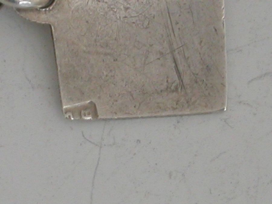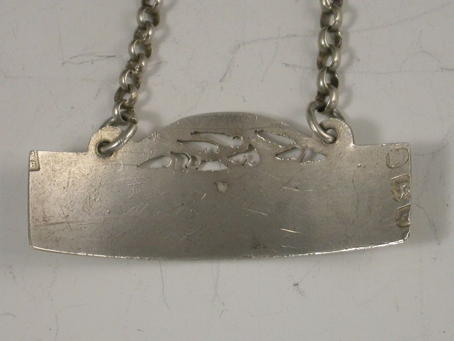 A rare George III silver Wine Label of fret - domed rectangular form with bright cut engraved border, incised for Madeira.