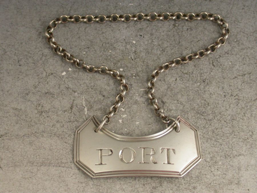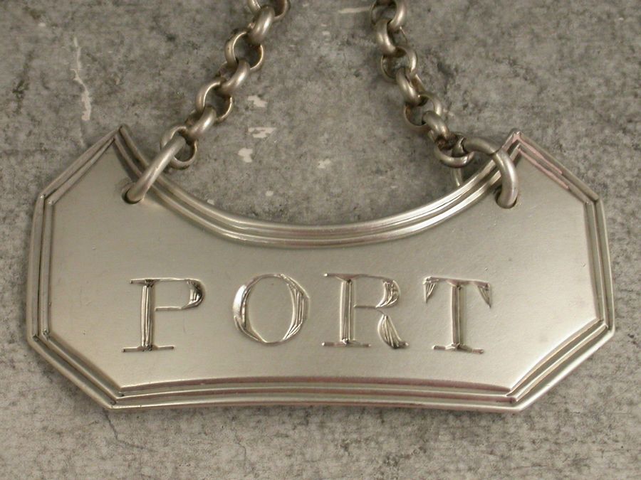 A rare and unusual George III silver Wine Label of ""boat"" shape with double reeded border, incised for Port.