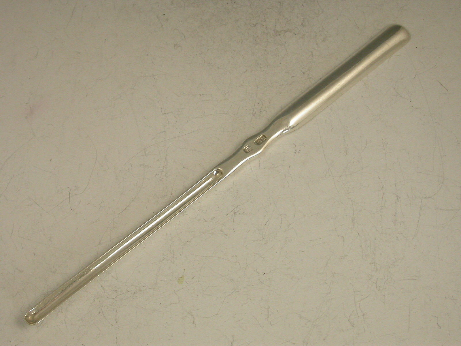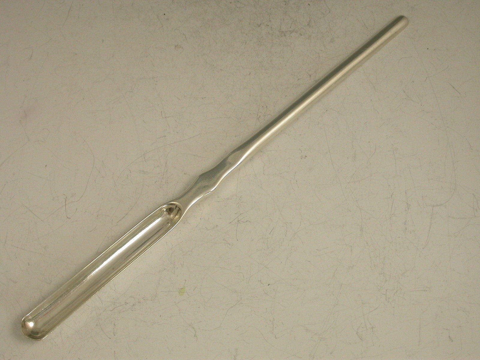 A rare George III early 19th century British Colonial silver Marrow Scoop of plain form with flared central stem and unusually, one bowl facing up and the other bowl facing down.