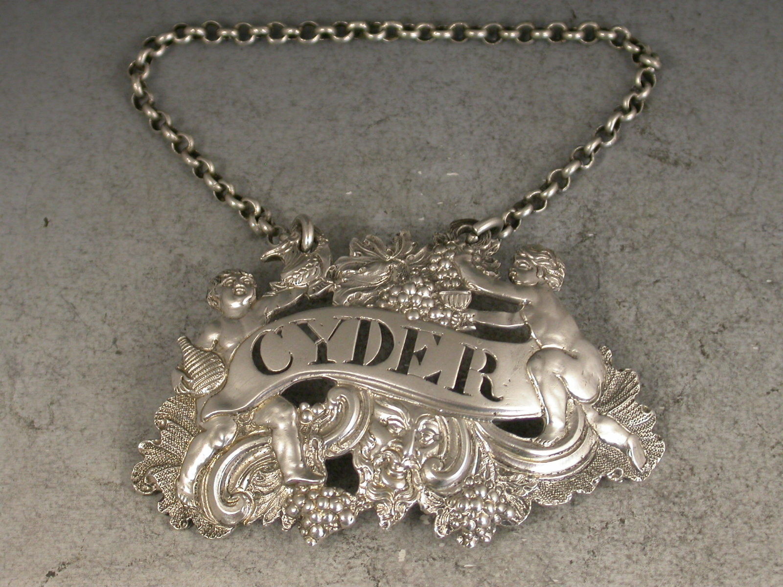 George III Cast Antique Silver Two Cupids Wine Label 'Cyder'