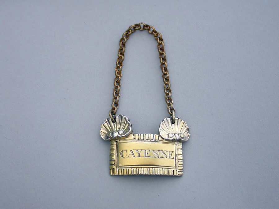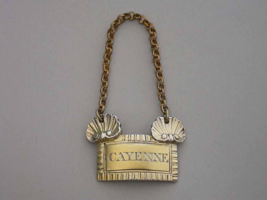 George III Cast Silver Gilt Sauce Label CAYENNE