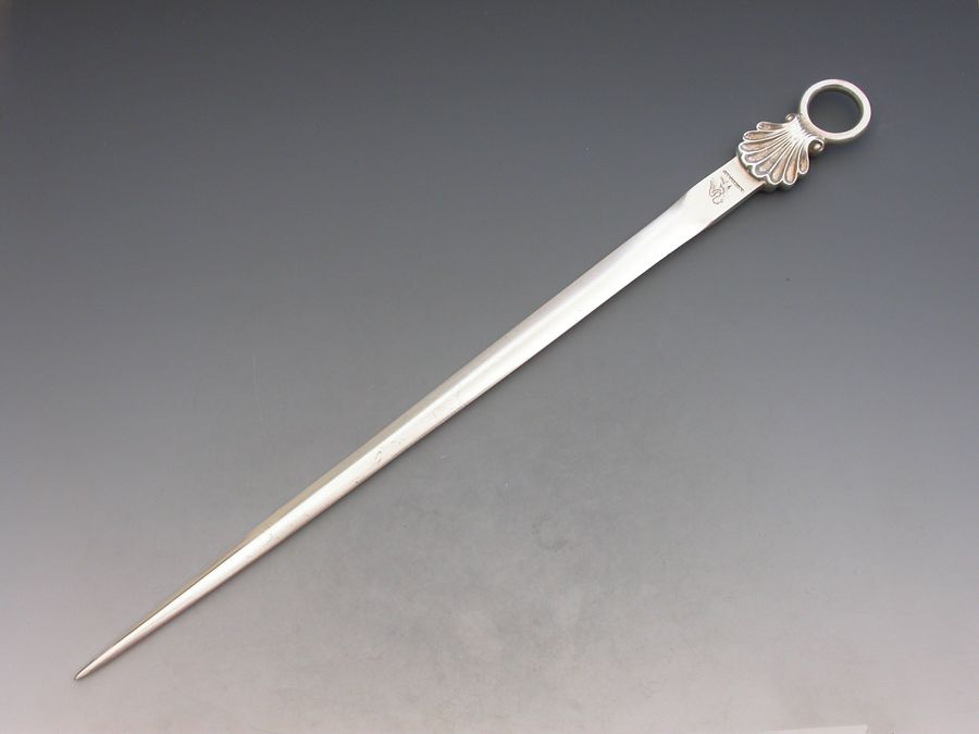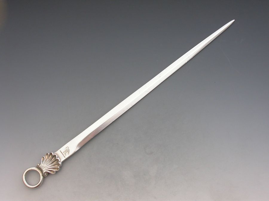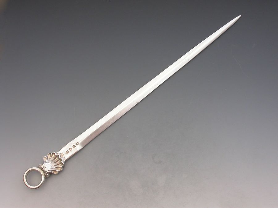 A good quality George III heavy cast silver Meat Skewer with plain tapering blade and shell and ring terminal.