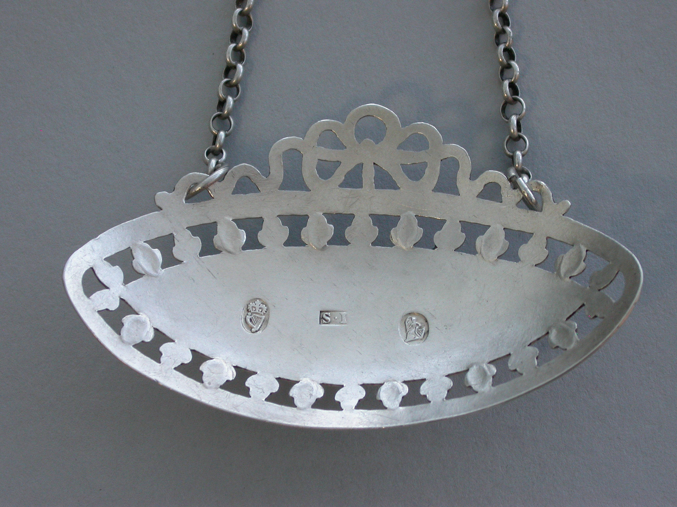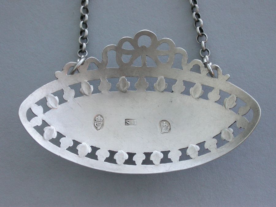 George III Irish Silver Pierced Oval Wine Label 'Brandy'