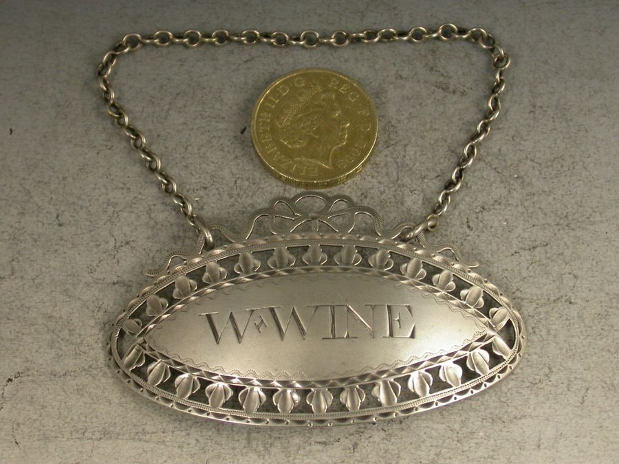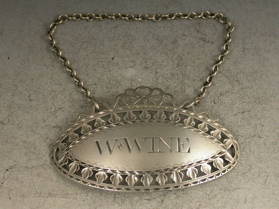 George III Irish Silver Pierced Oval Wine Label W*Wine