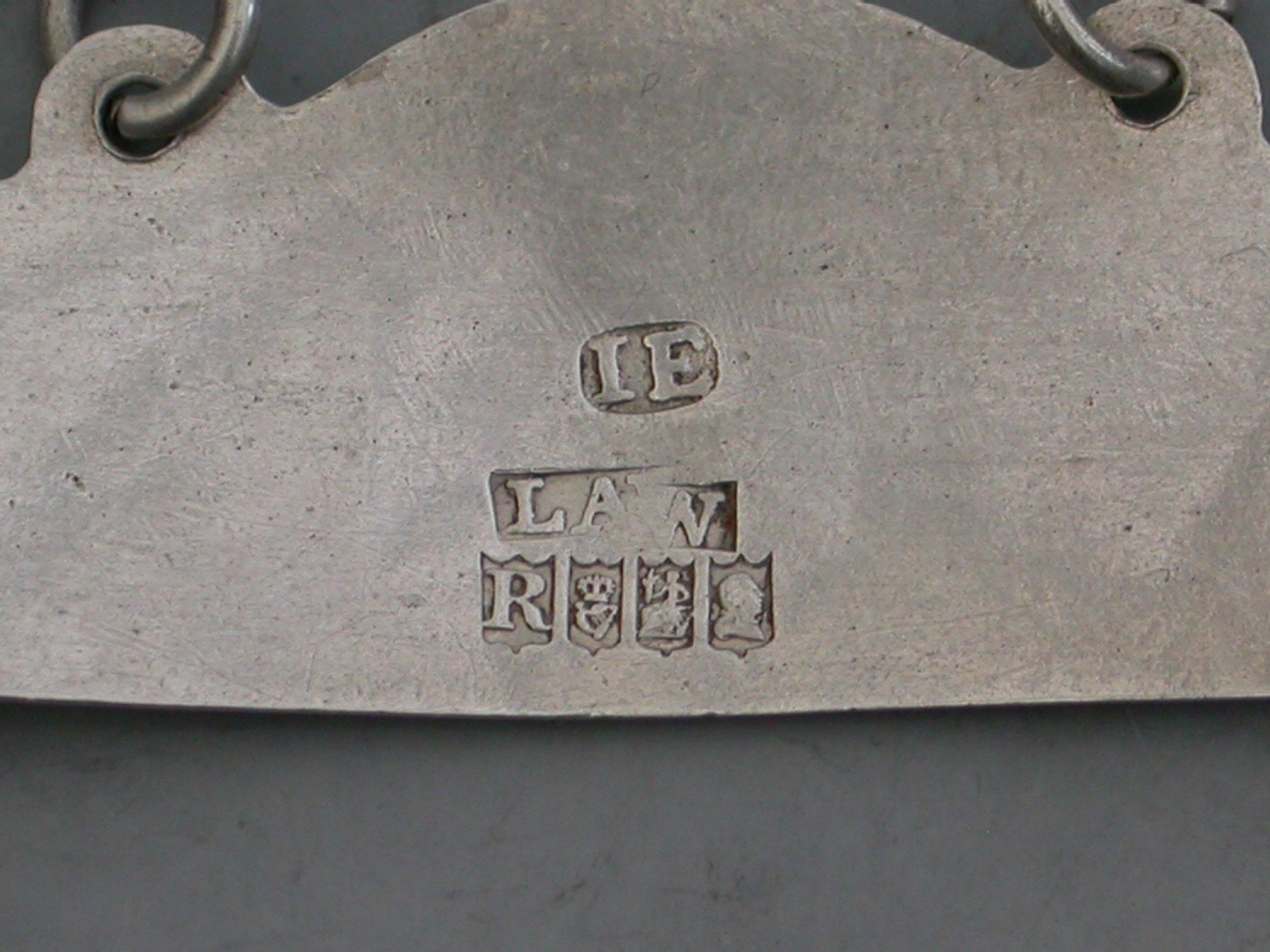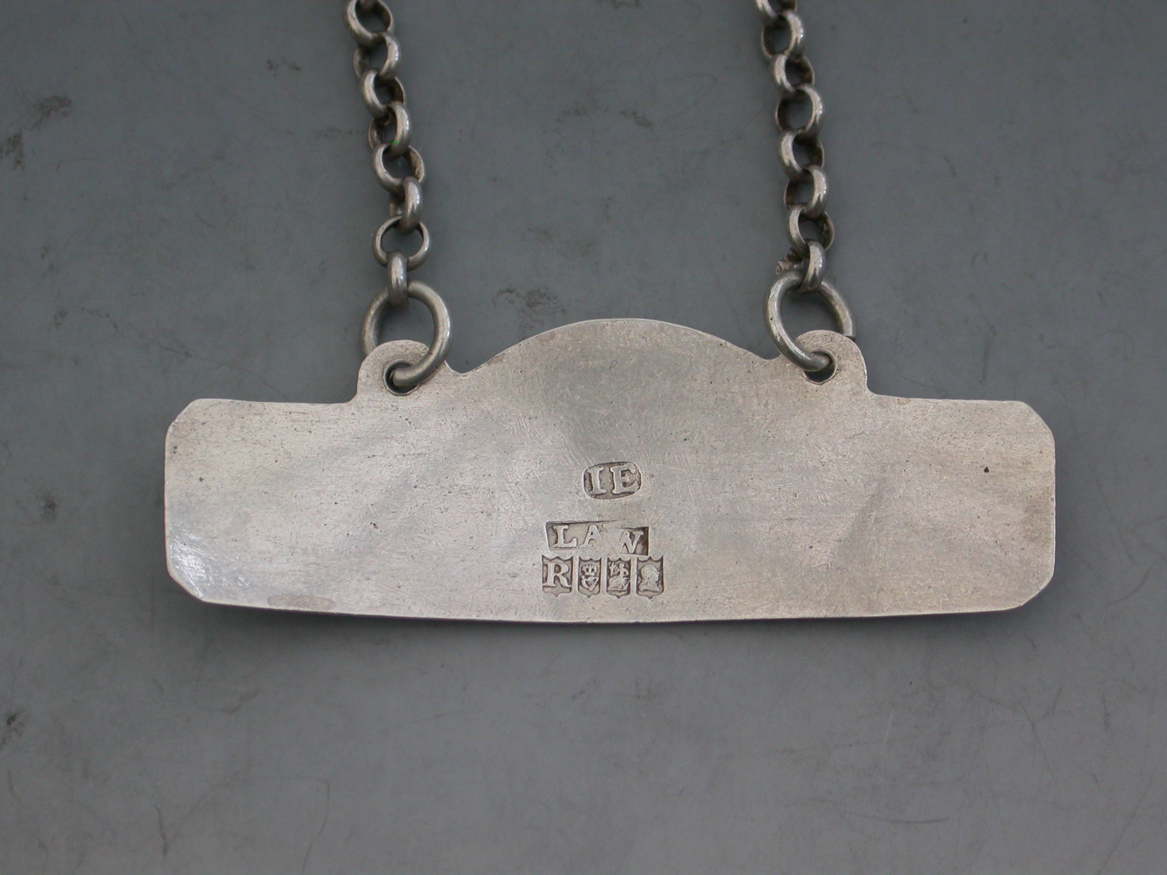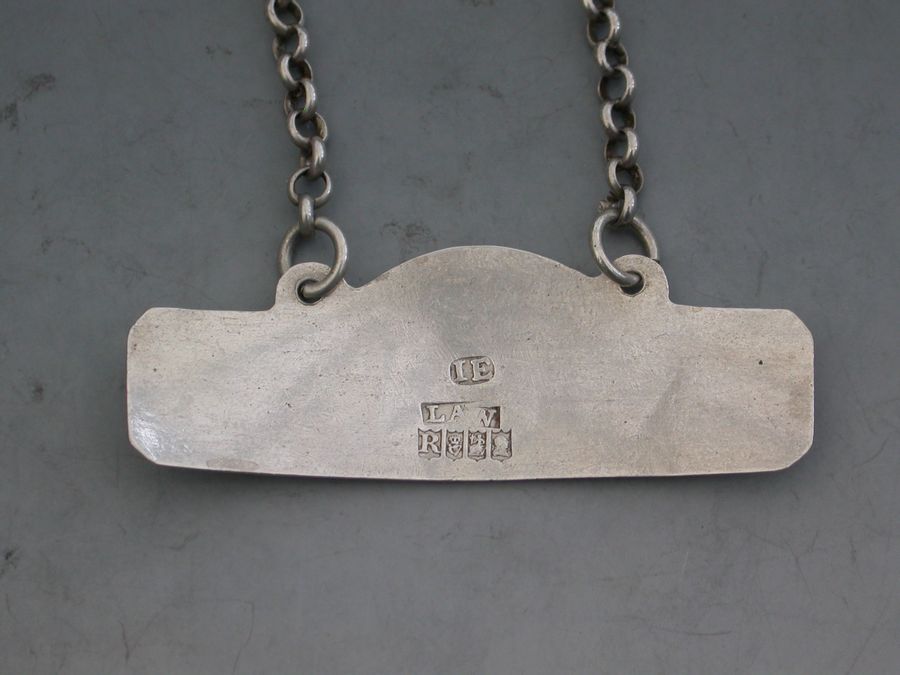 A good George III Irish silver Wine Label of plain domed rectangular form with cut-corners and raised eyelets, incised for Vin-De-Grave with a capital letter 'C' engraved above (the C possibly to indicate Claret).