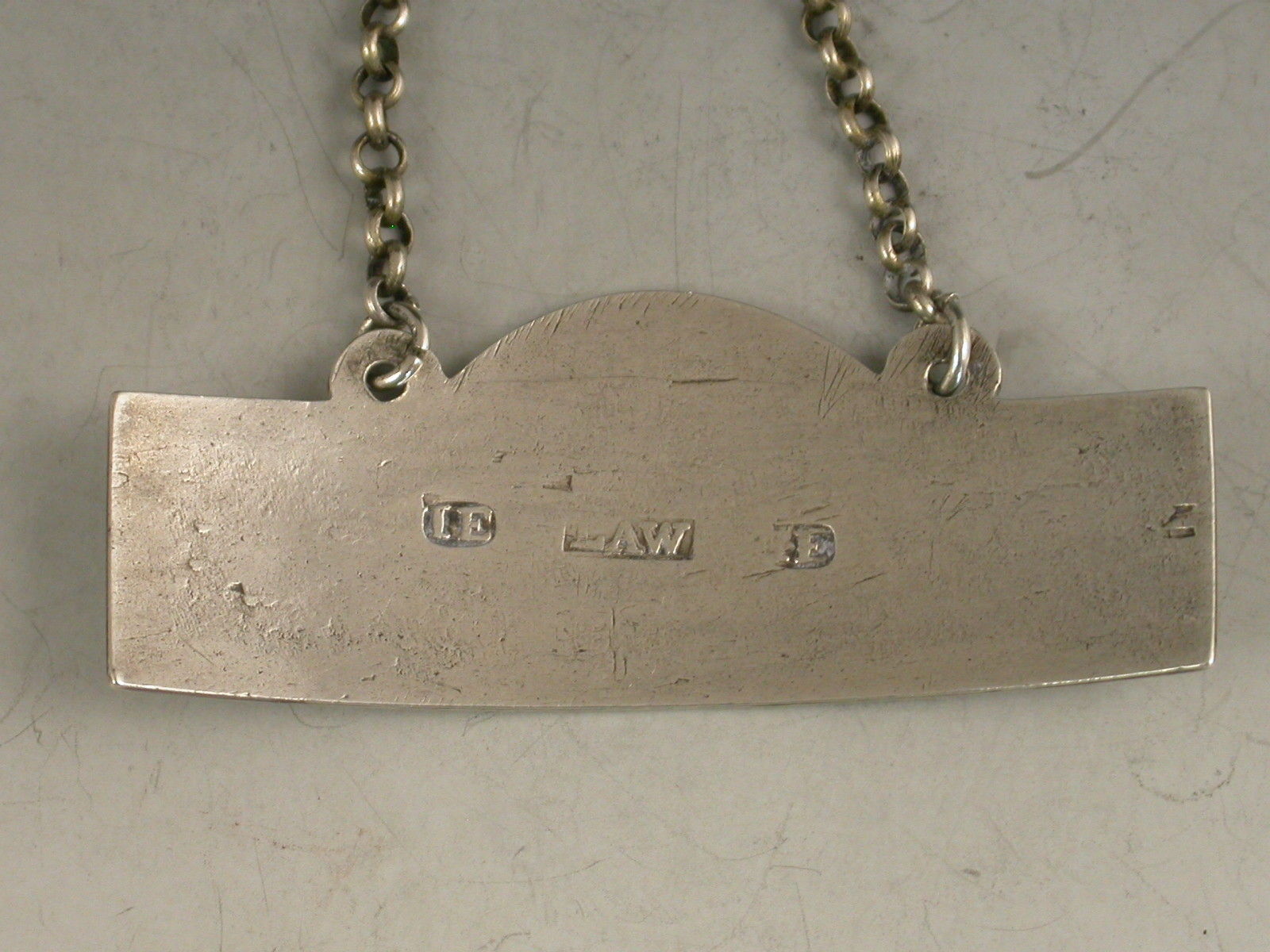 A good George III Irish silver Wine Label of typical plain narrow rectangular form with domed surmount and raised eyelets, incised for Calcavella and engraved with a crest of an Escallop (scallop shell) above a festoon.