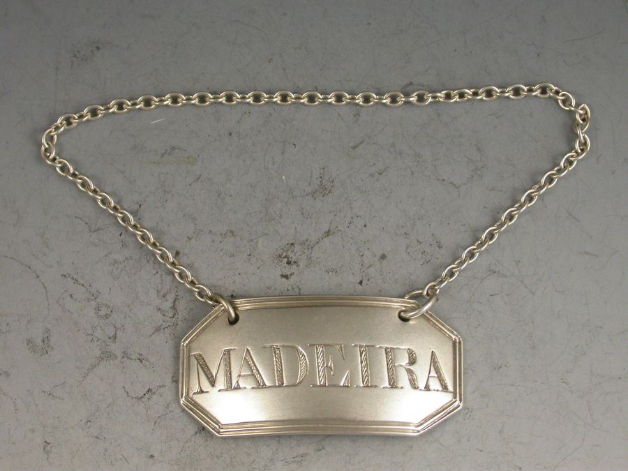 A George III Irish silver Wine Label of cut-cornered rectangular form with double reeded border, incised for Madeira.