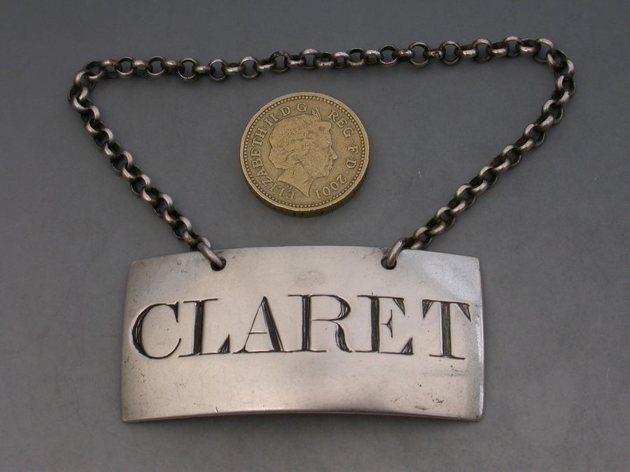 An unusual George III silver Wine Label of plain broad rectangular form and of larger than average size, incised for Claret.