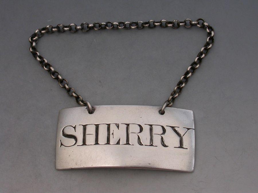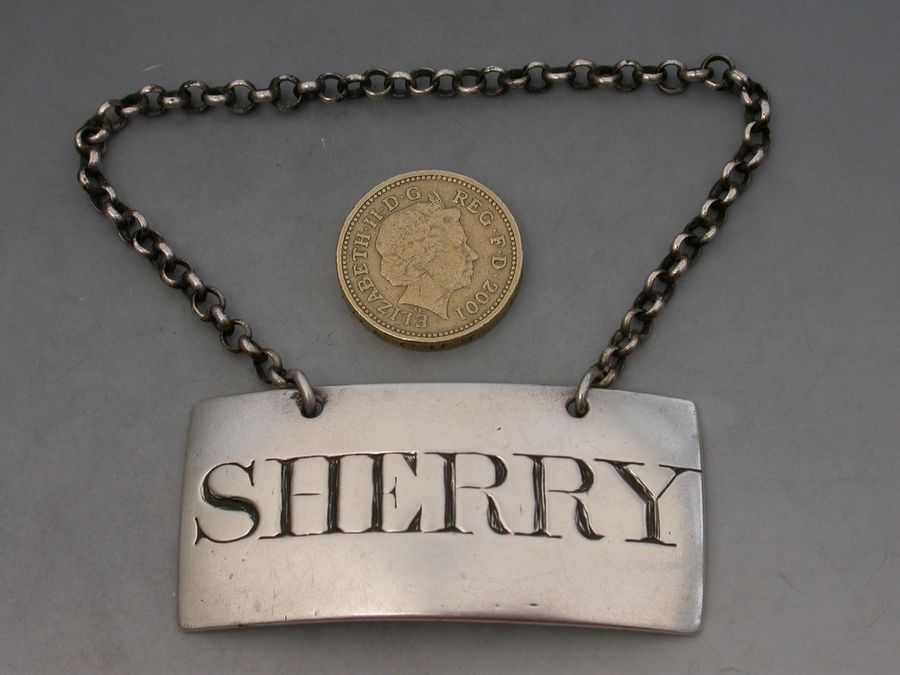 An unusual George III silver Wine Label of plain broad rectangular form and of larger than average size, incised for Sherry.