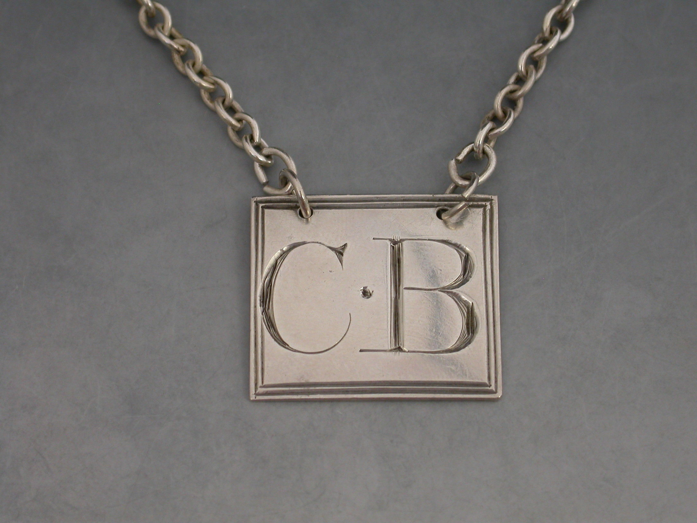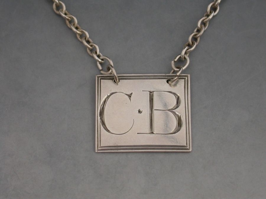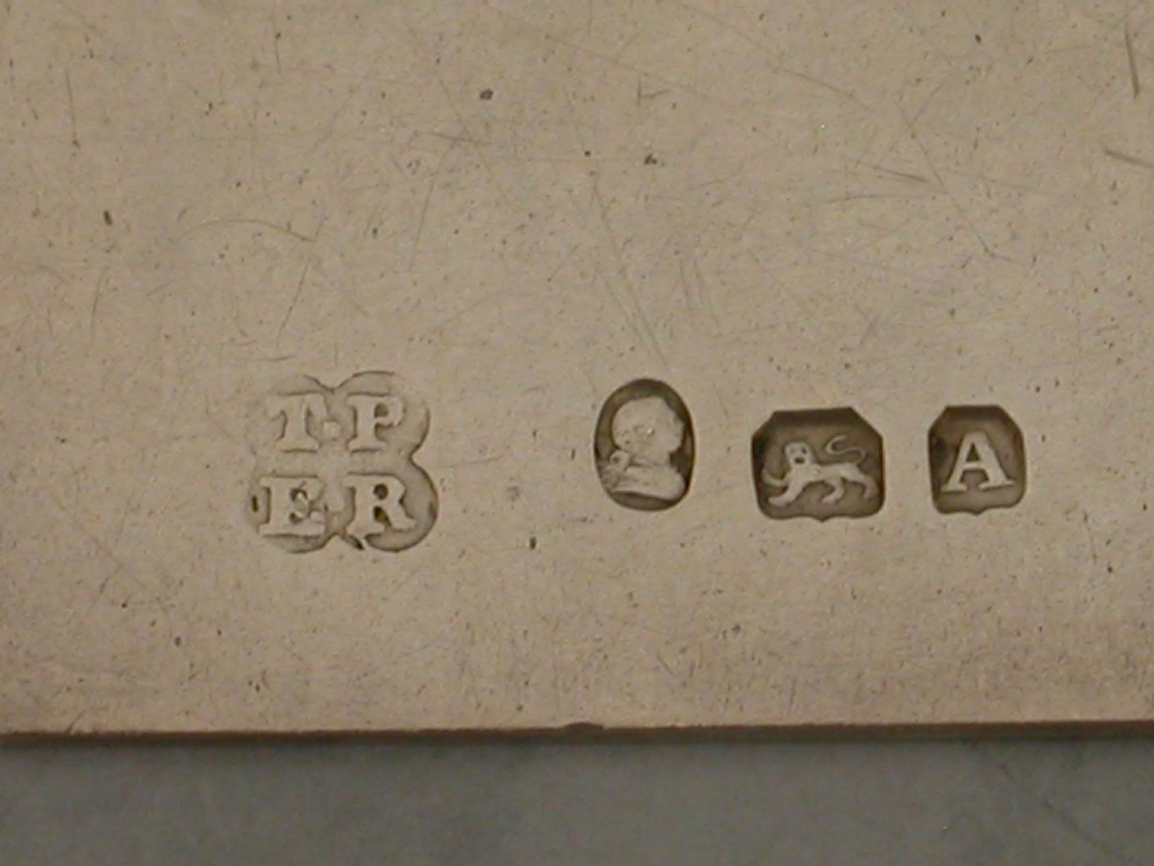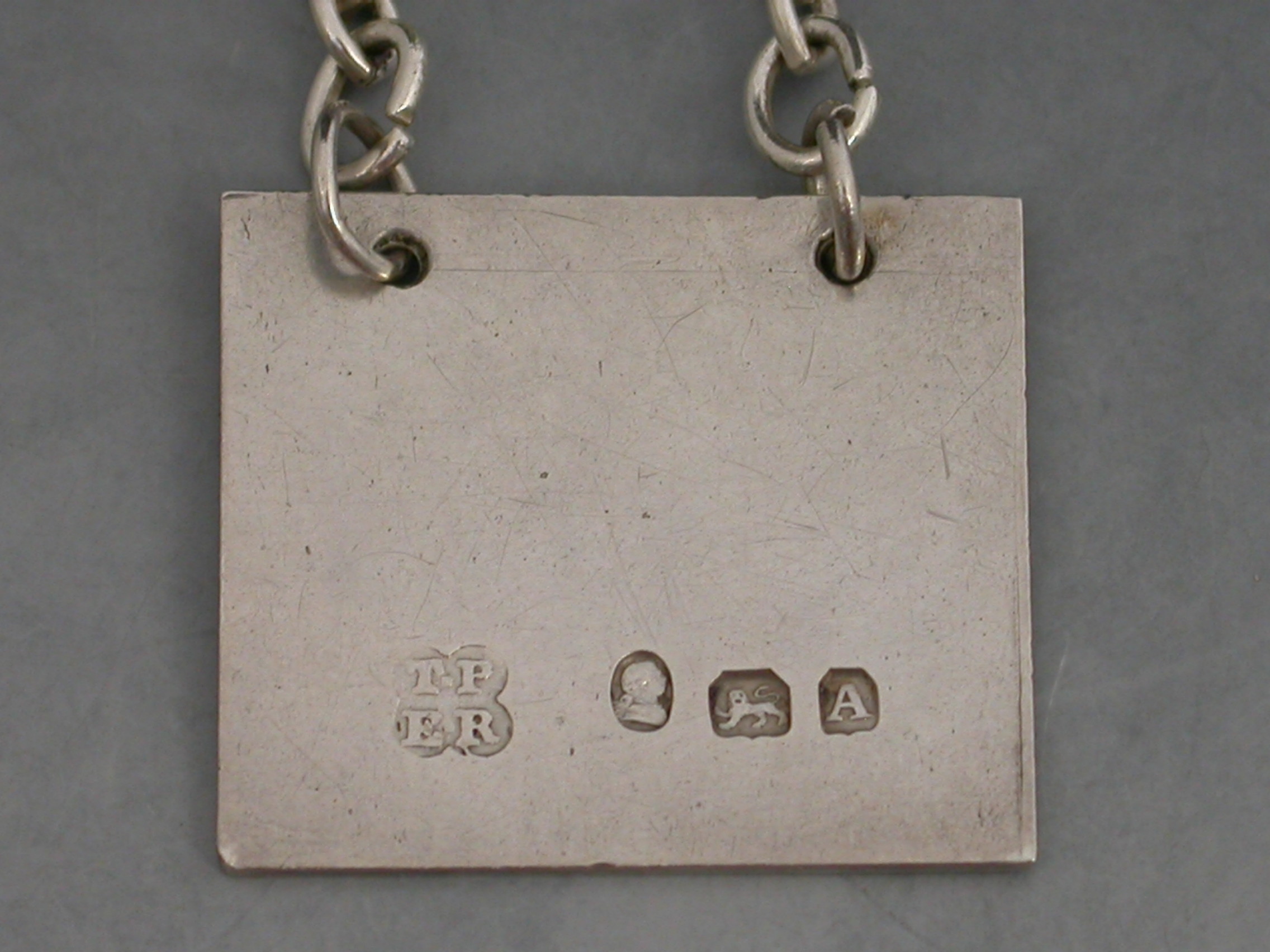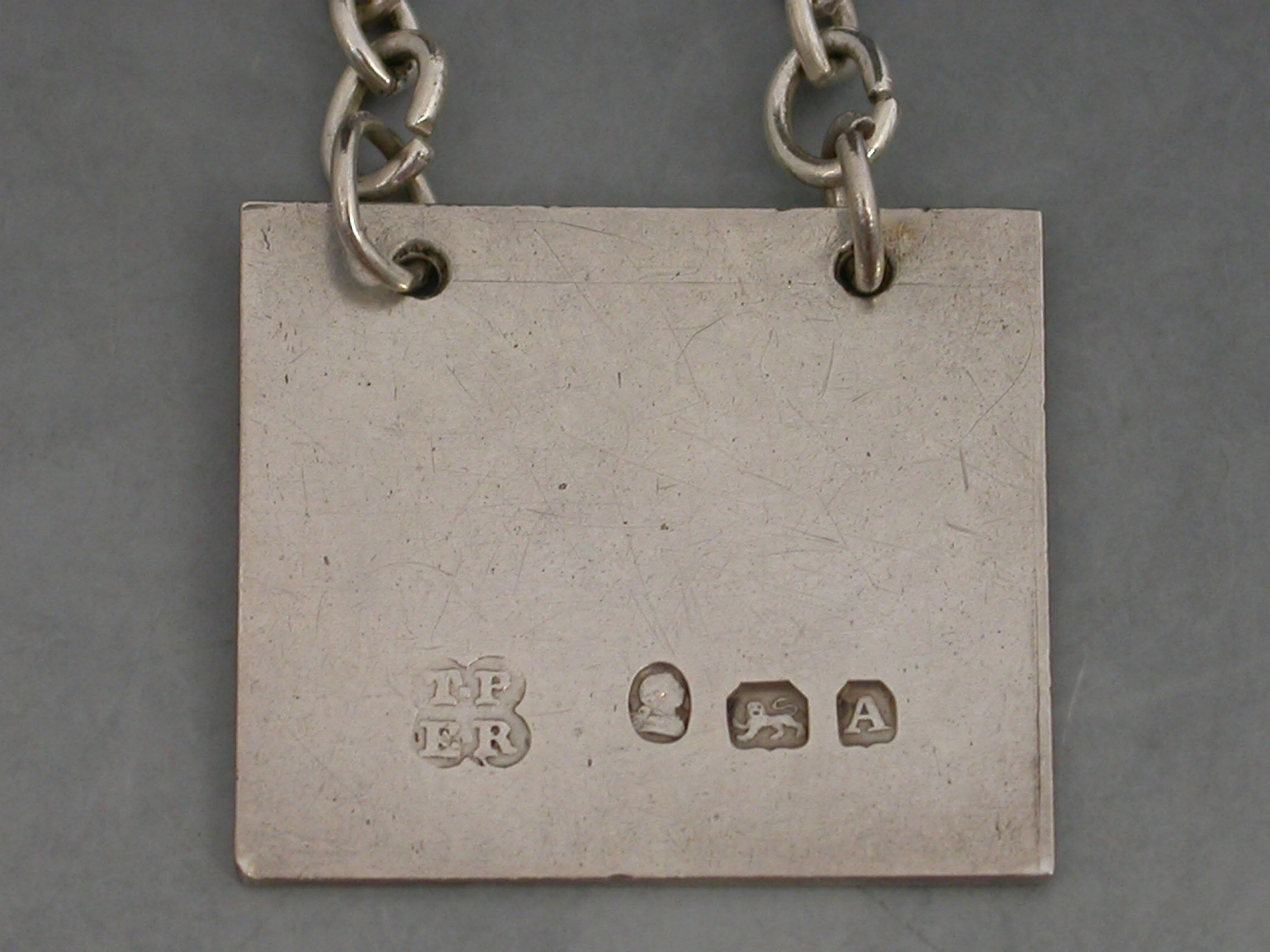 A rare George III silver Wine Label of rectangular ""postage stamp"" form, with double reeded border, incised for 'C.B' (Cherry Brandy).