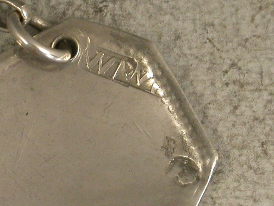 Makers mark W ? struck twice and George III duty mark. Both marks struck very close to the edge of the label. Possibly for William Robertson of Edinburgh?