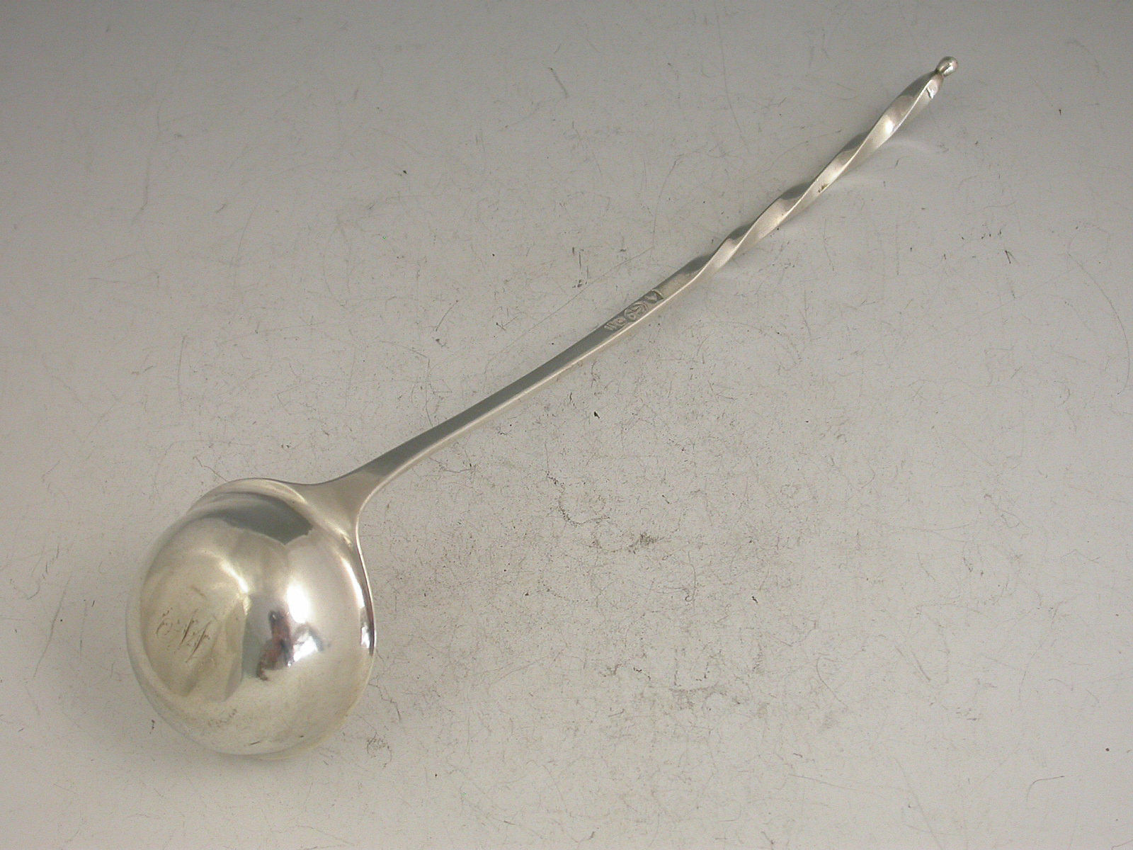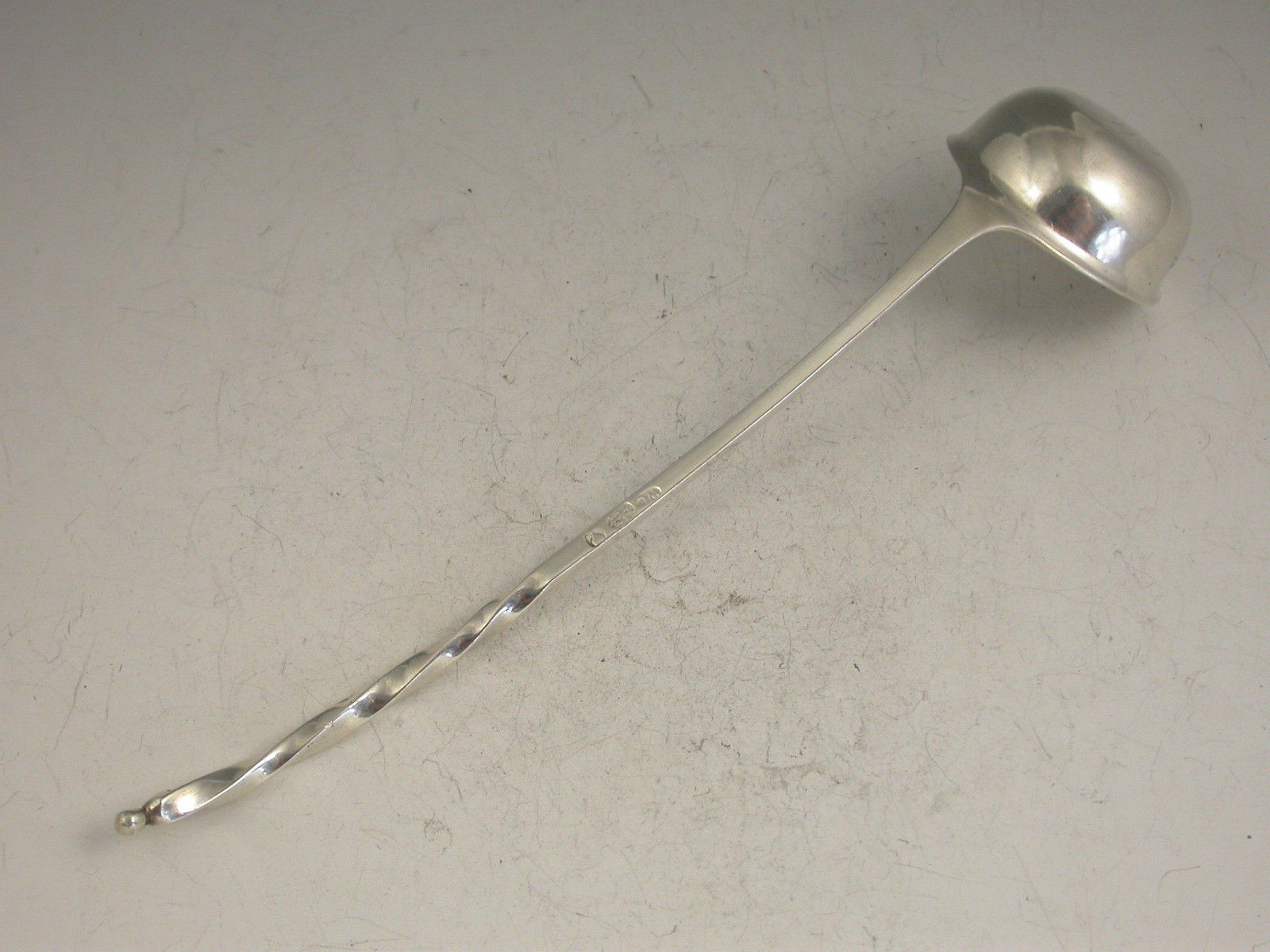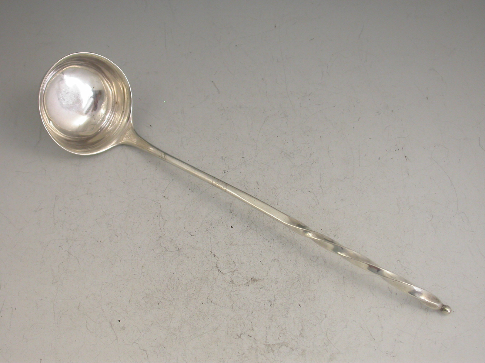 A rare George III Scottish Provincial silver Toddy Ladle with curved twisted stem and ball finial.