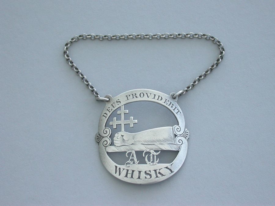 George III Scottish Silver Armorial Wine Label 'Whisky' - Thomson Family