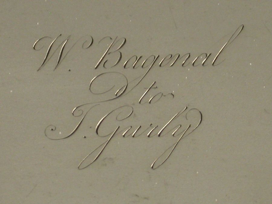 A fine quality George III Scottish silver Snuff Box of perfectly plain rectangular form with canted corners and silver gilt interior, a trick opening second cover to the lid opening to reveal a secret compartment. The only decoration a presentation inscription to the lid: W.Bagenal to J.Gurly.