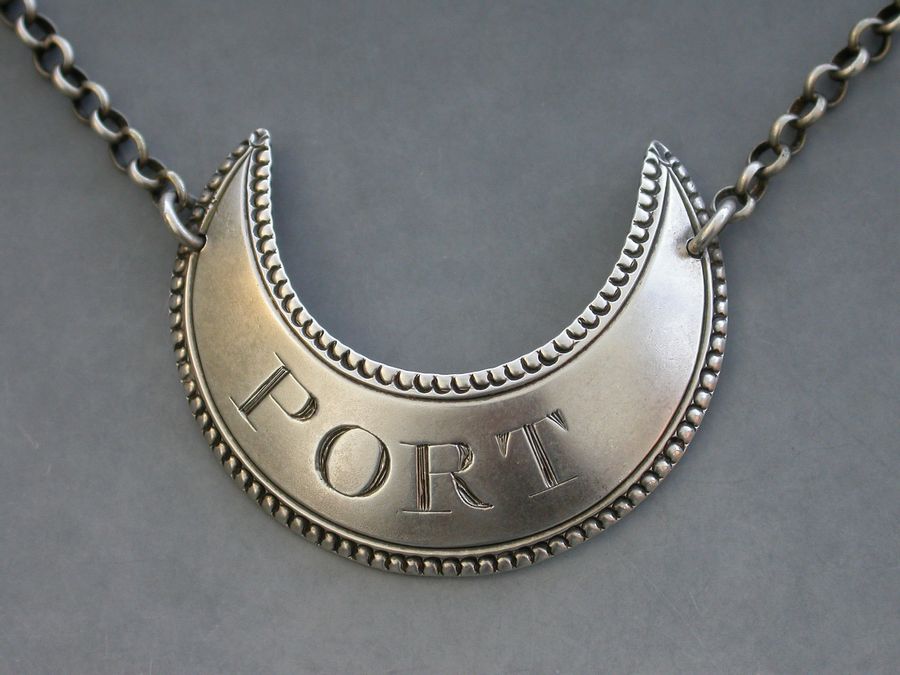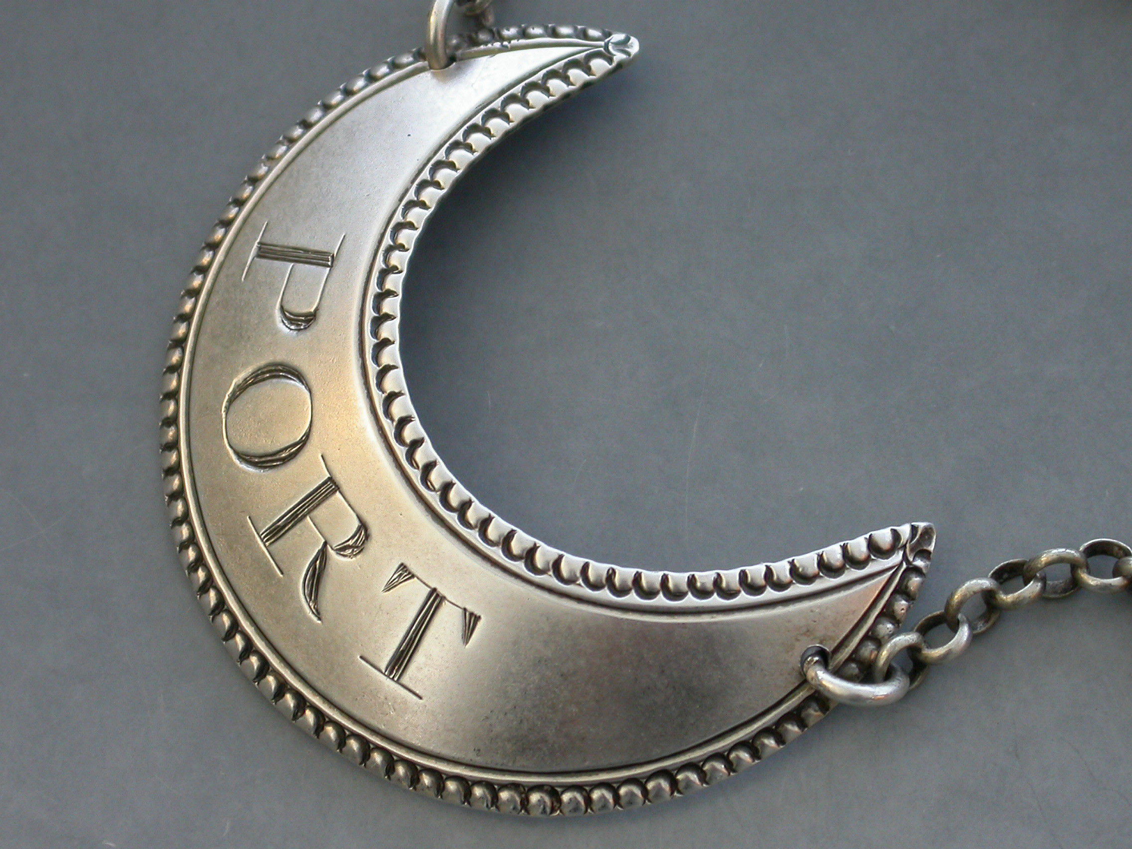 George III Silver Bead Edge Crescent Wine Label 'Port'