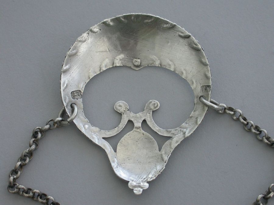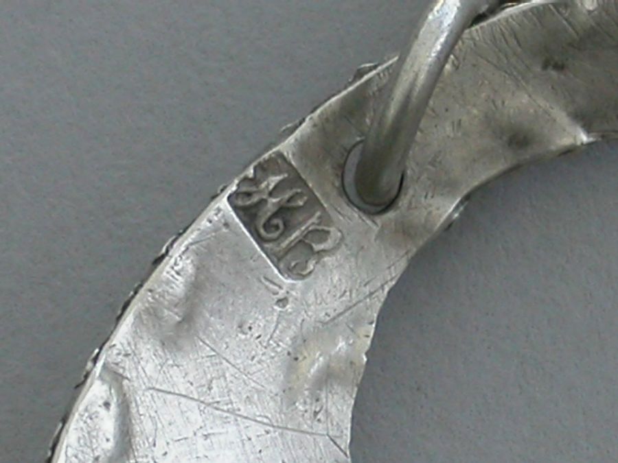 A fine George III silver Wine Label of enclosed crescent form with oval cartouche above engraved with contemporary initials, supported by swags with tied ribbon surmount, feather edge borders, incised for Madeira.
