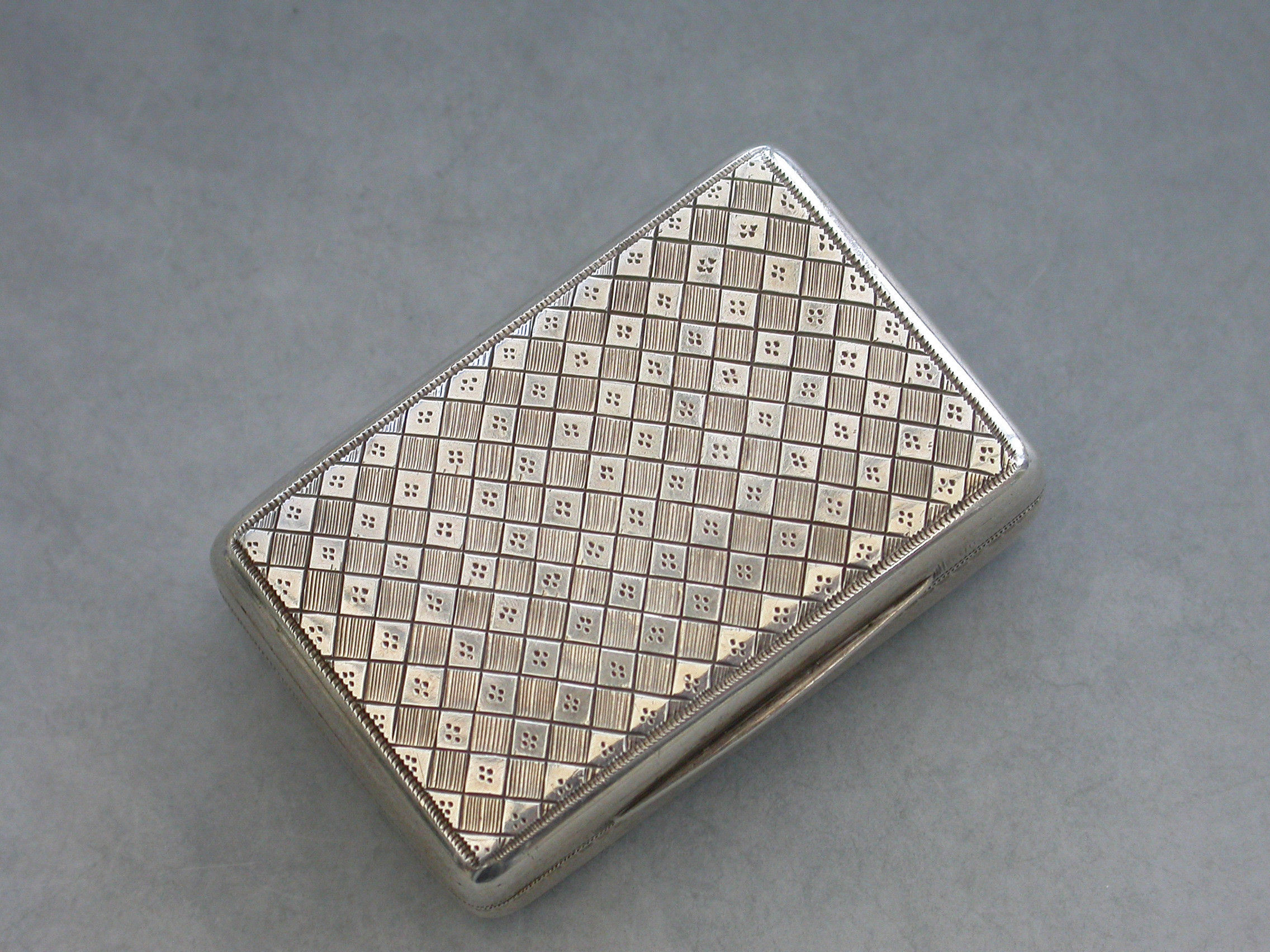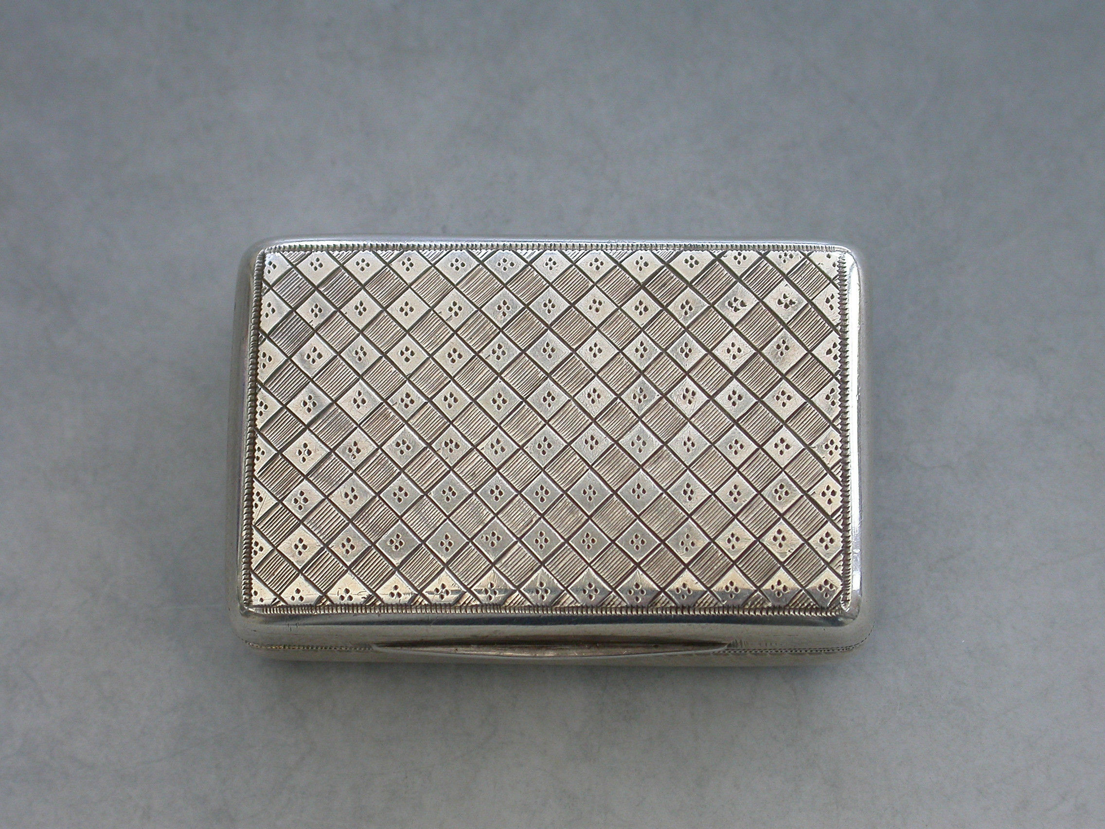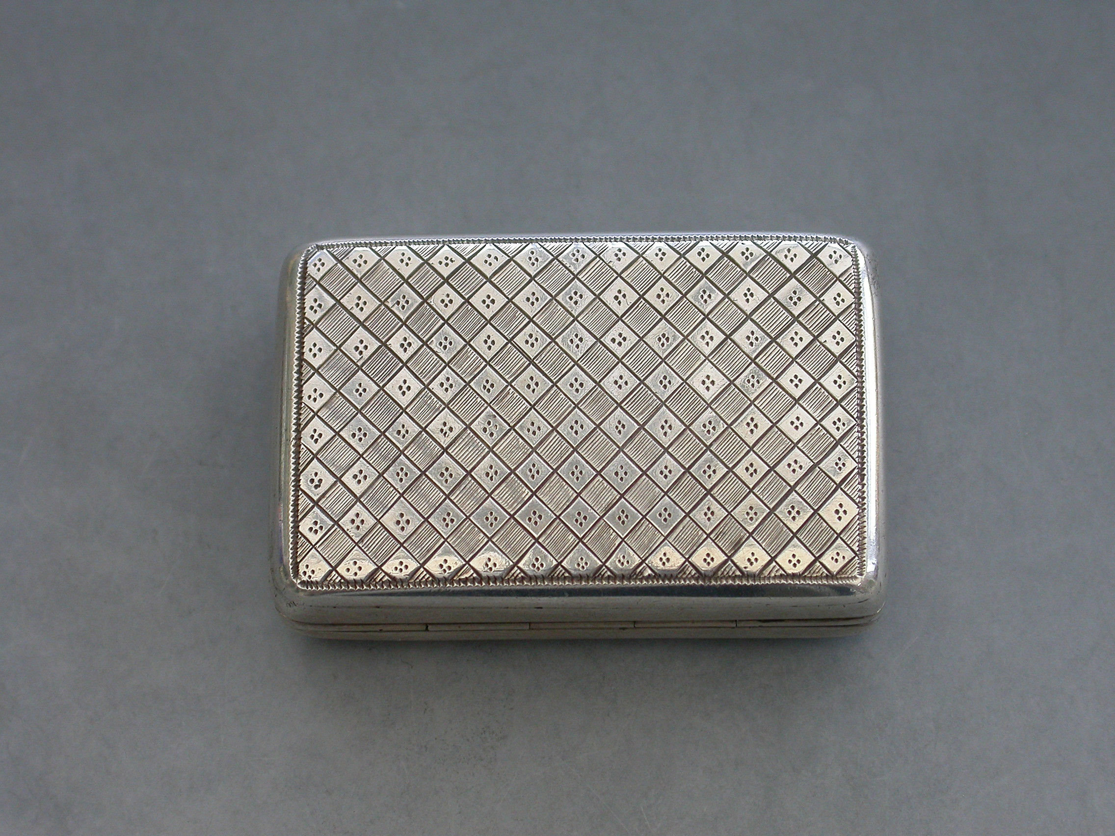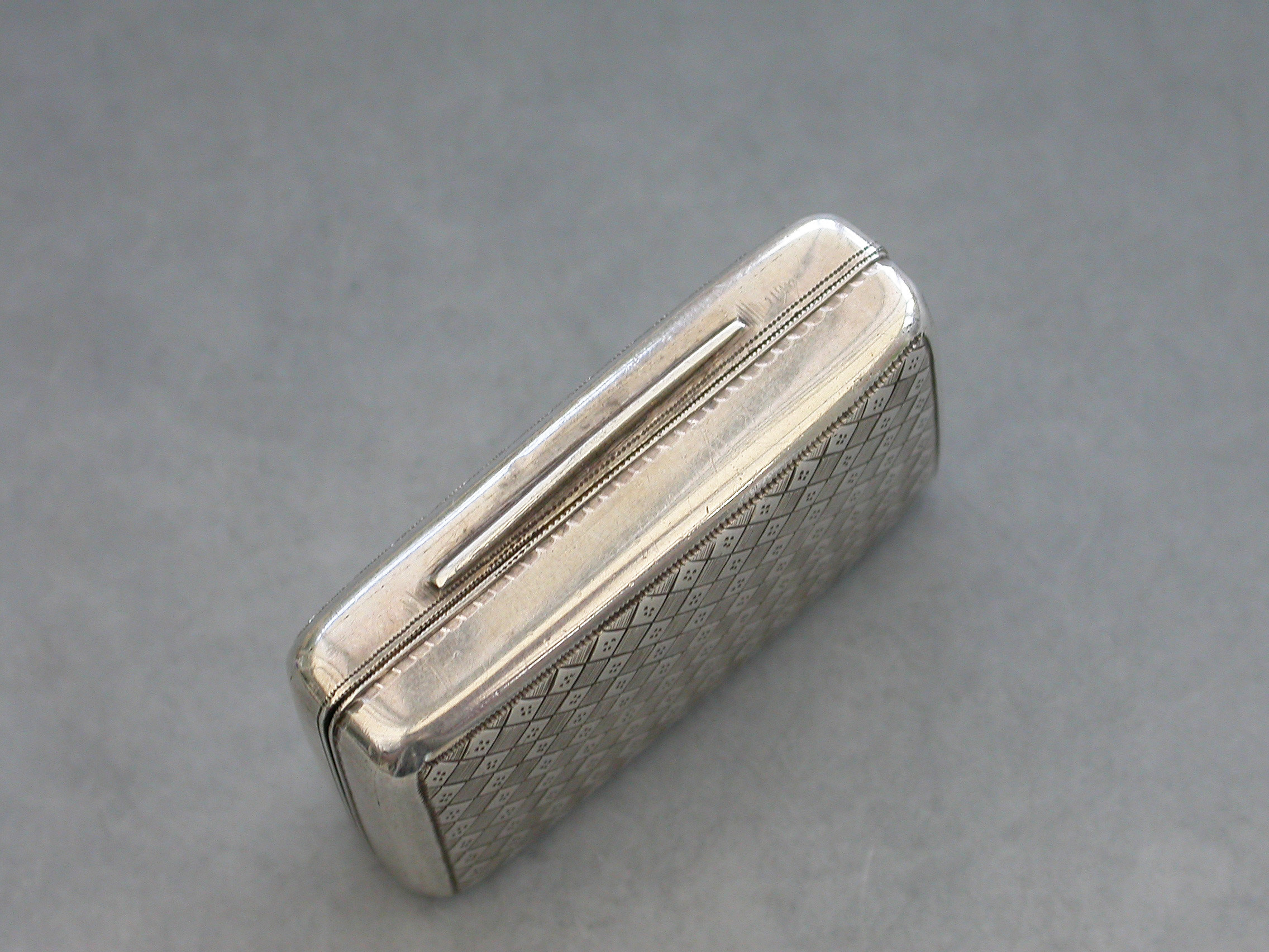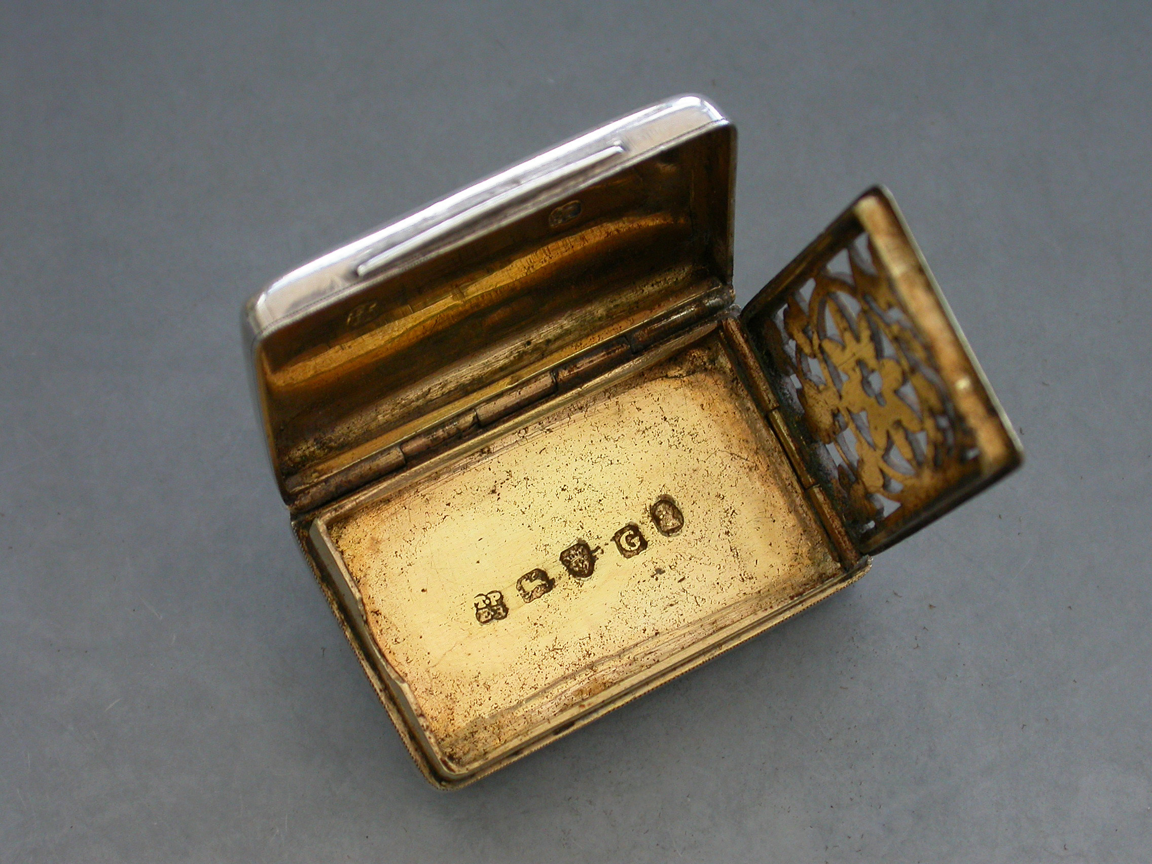 A good quality George III silver Vinaigrette of rounded rectangular form, the top and the bottom with bright-cut engraved lattice decoration, the silver gilt interior with a pierced grille depicting the Flowers of the Union.