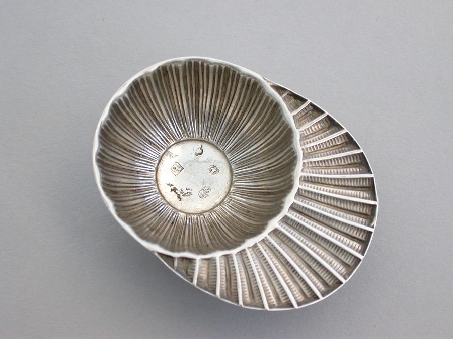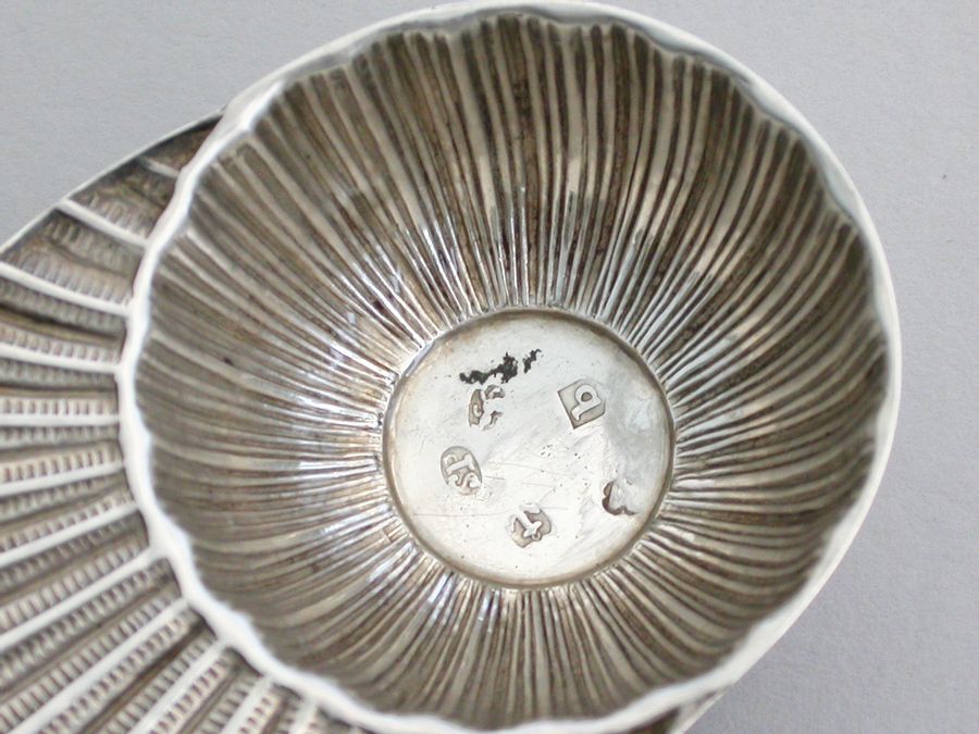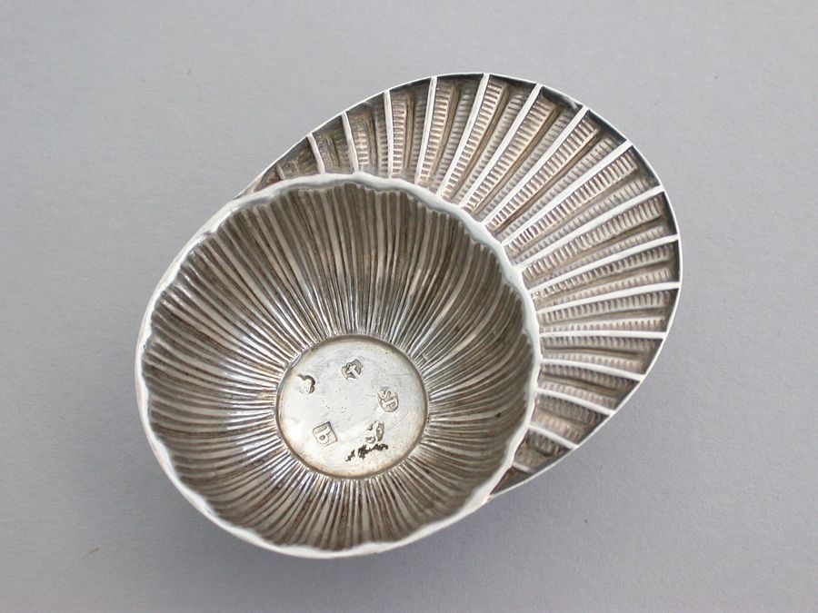 A good George III novelty silver Caddy Spoon made in the form of a Jockey's Cap, with ribbed decoration, a plain silver button top.