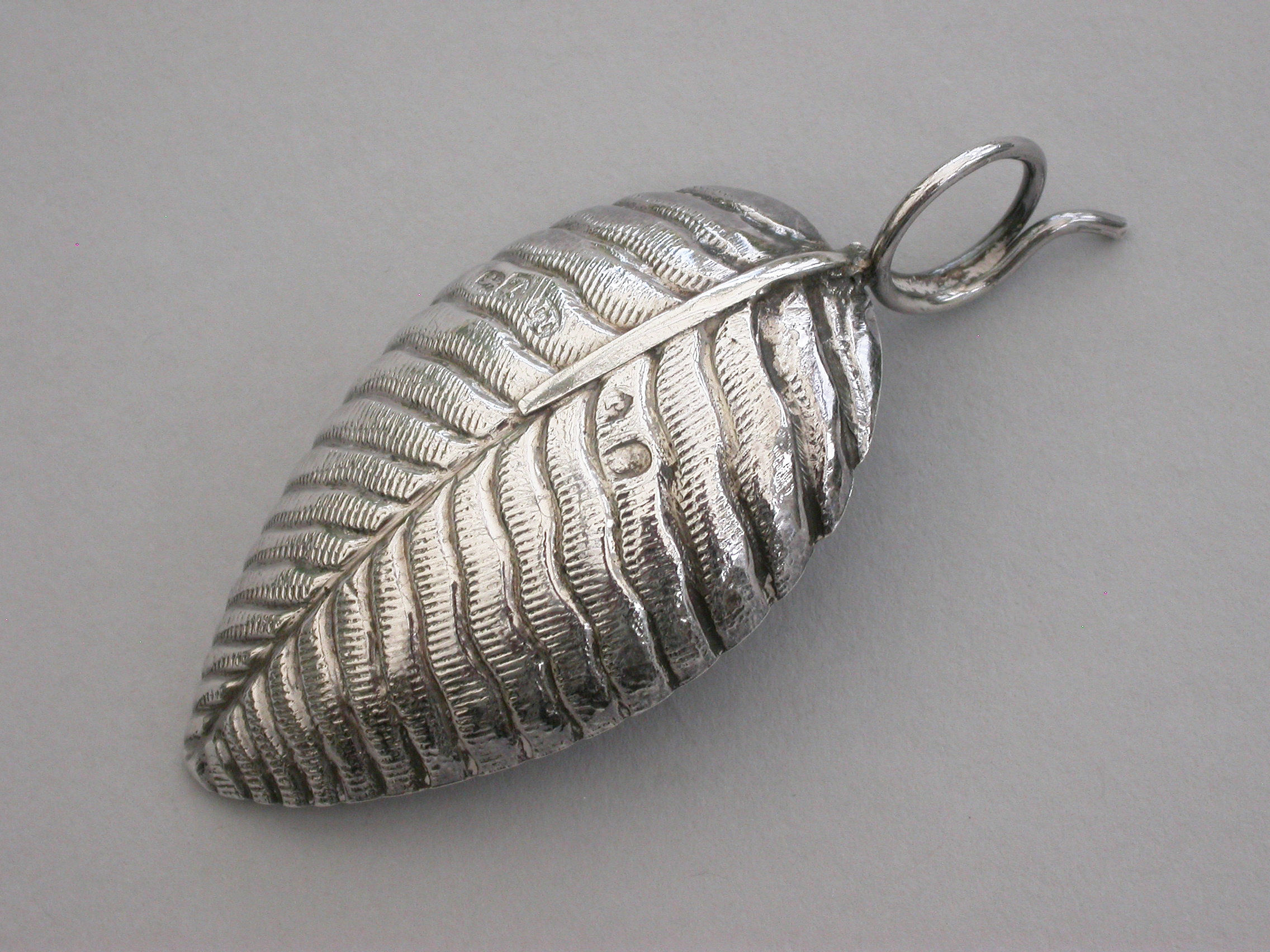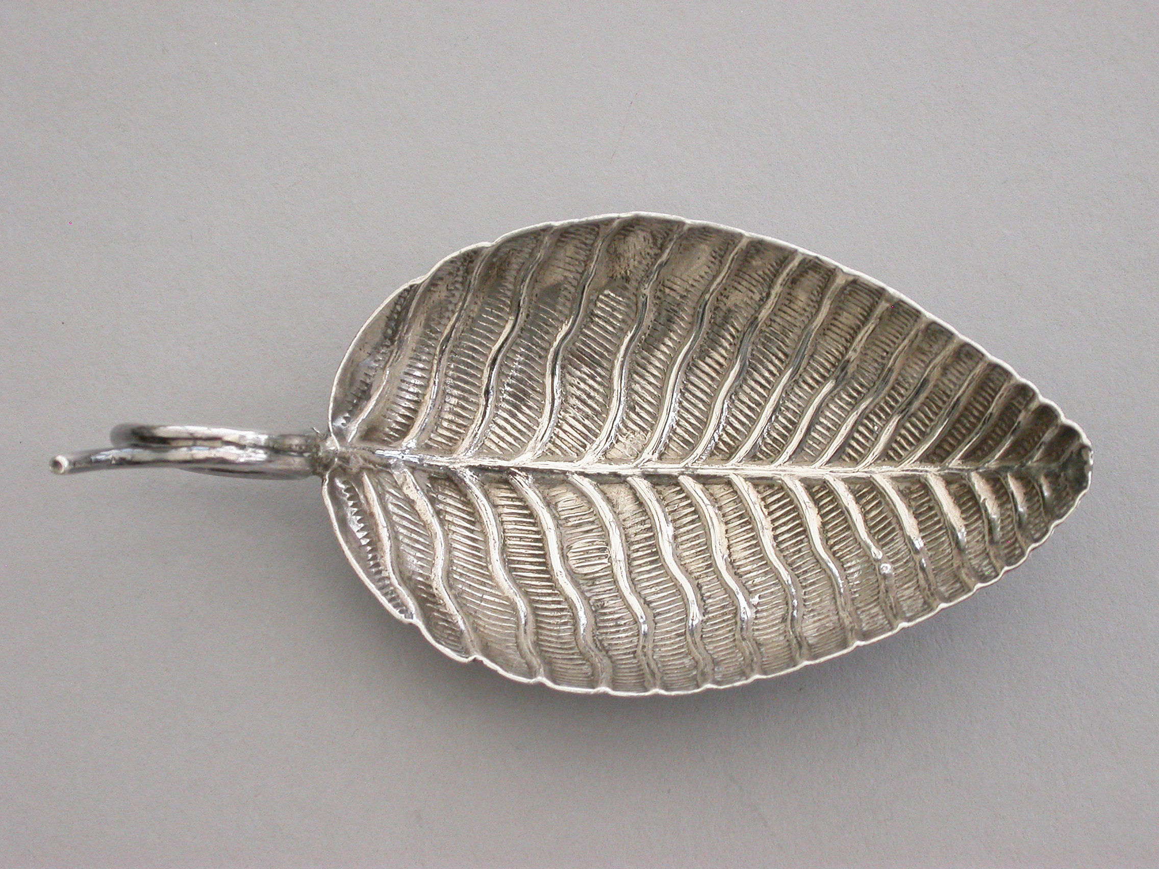 A good George III silver Caddy Spoon of veined leaf form with twisted loop handle,