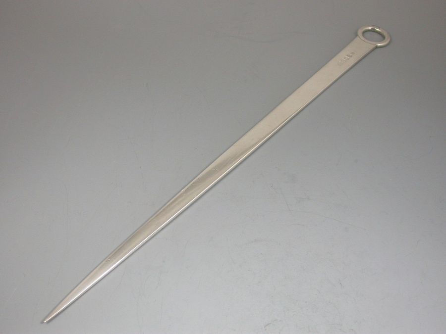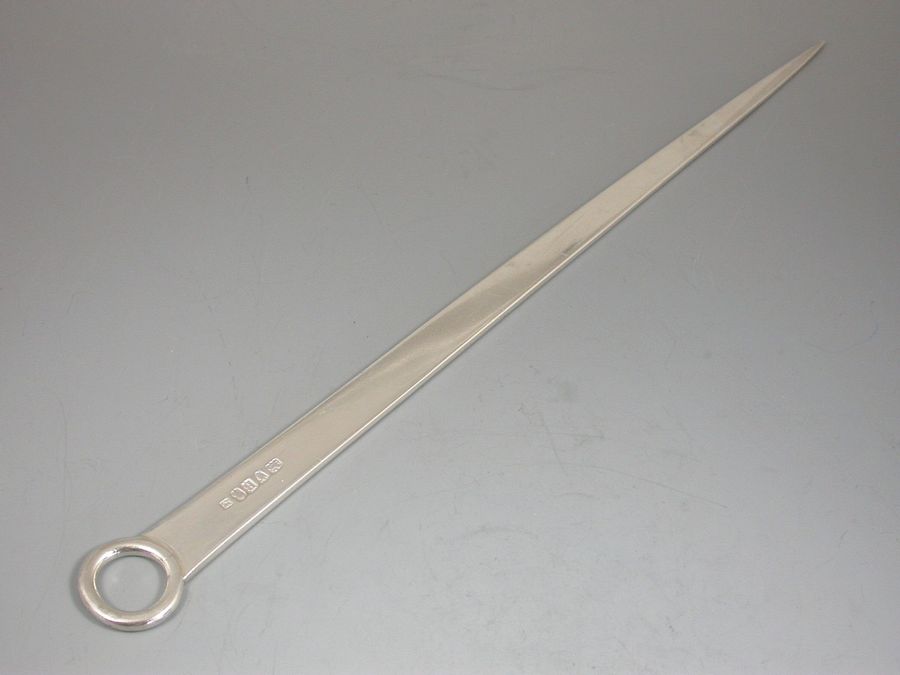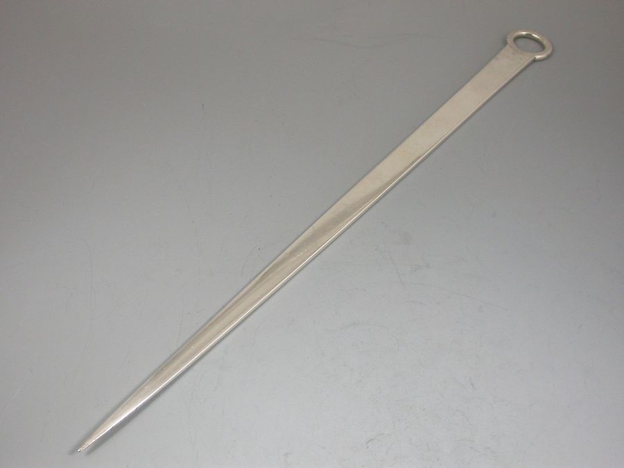 An interesting George III silver Meat Skewer, of standard form with plain ring terminal, the blade engraved ""Coll: Exon."" for Exeter College, Oxford University.