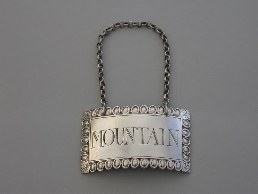 George III Silver Ovolo Border Wine Label 'Mountain'