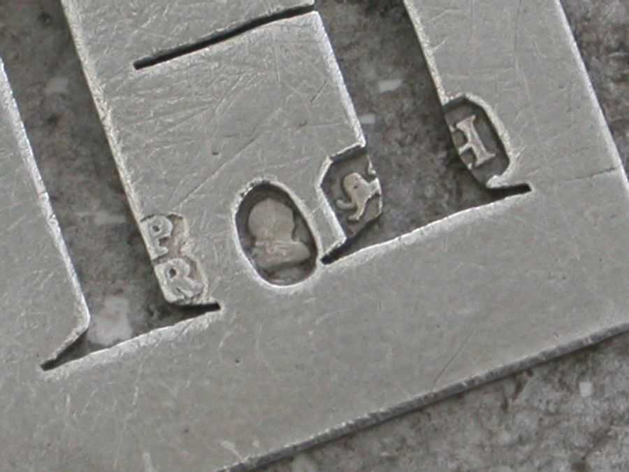 A good George III silver Wine Label of rectangular postage stamp form with double reeded border pierced with a capital letter 'H' (for Hollands).